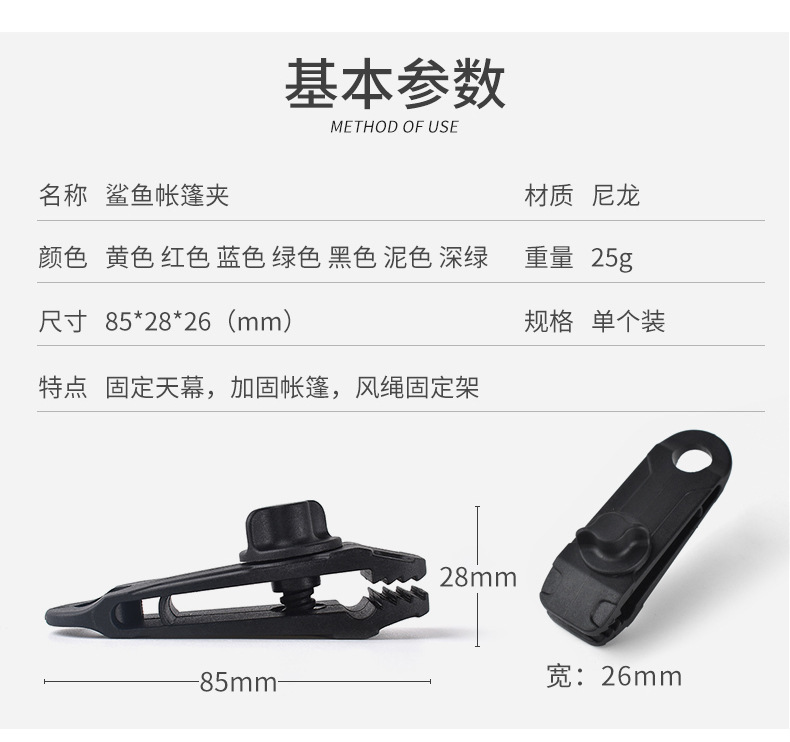 帐篷增设拉点鲨鱼夹 户外野营天幕挂钩大号帐篷夹防风带倒钩夹子