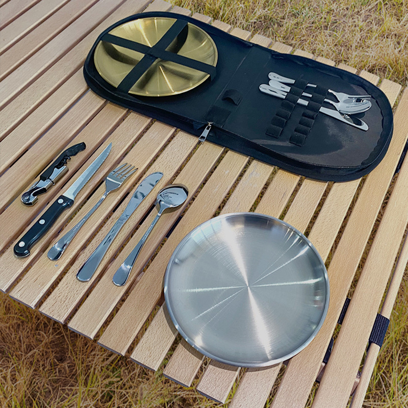 不锈钢野营餐具包 登山旅行露营野餐包手提包 户外炊具套装便携