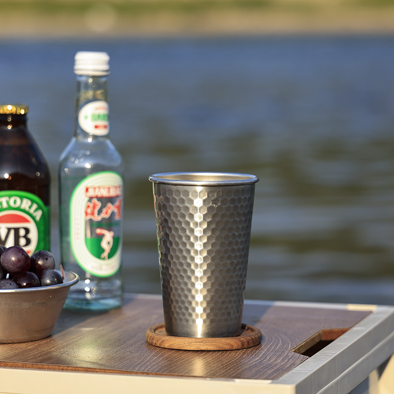 户外露营不锈钢锤纹水杯304不锈钢杯子便携式啤酒杯咖啡冷饮杯