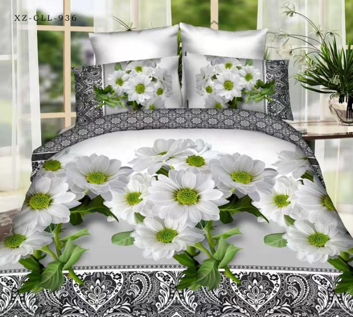 3D外贸床品花型新颖大气,3D技术活性印花,色彩明亮,图案逼真。采用细纱平纹织造,磨毛工艺处理,手感细腻柔软,适合春夏季节使用。