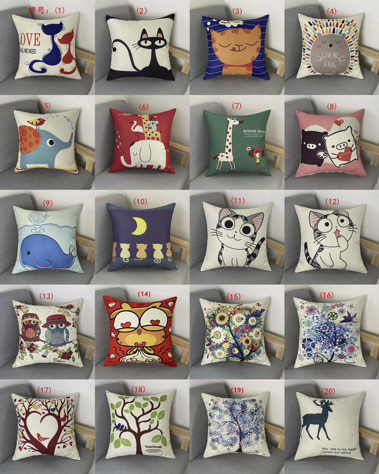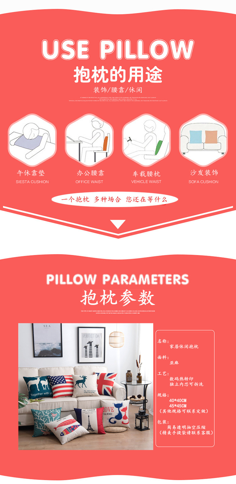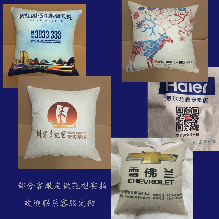 抱枕卡通靠垫家居沙发坐椅亚麻靠枕含芯现代简约风格来图印刷LOGO