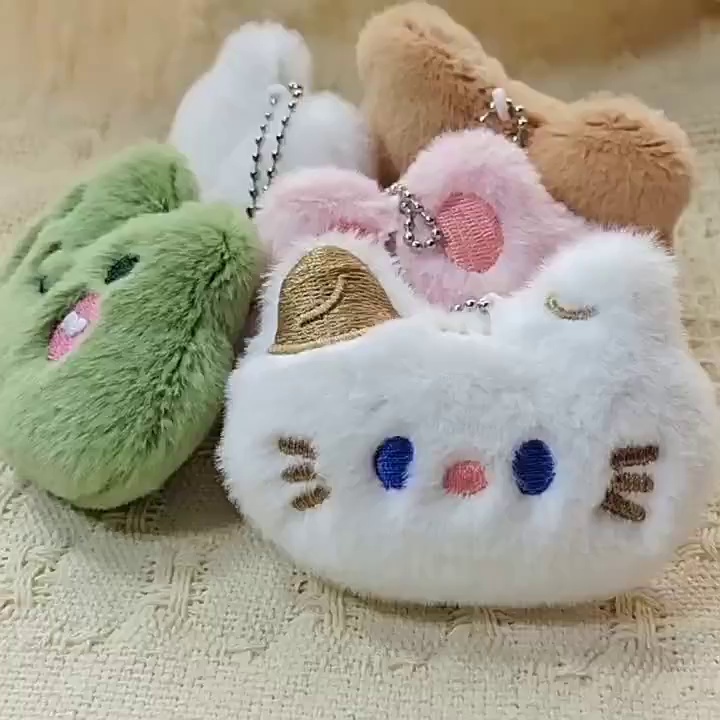 卡通毛绒公仔胸针小兔小猫小熊青蛙手腕带配件玩偶包包钥匙扣挂件