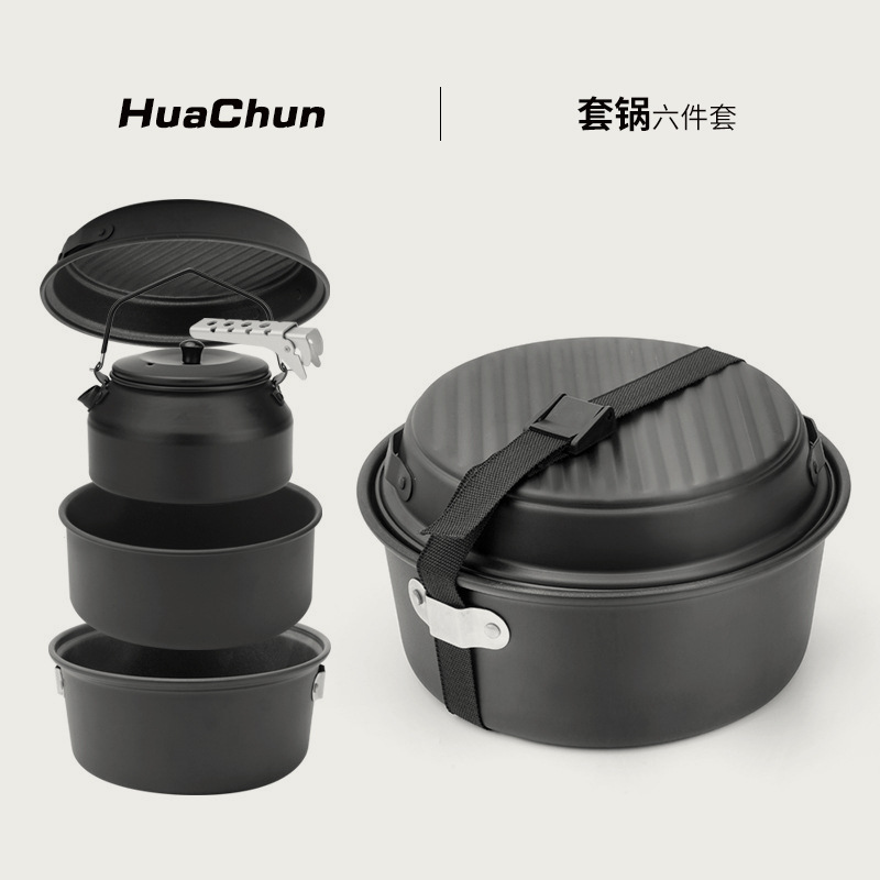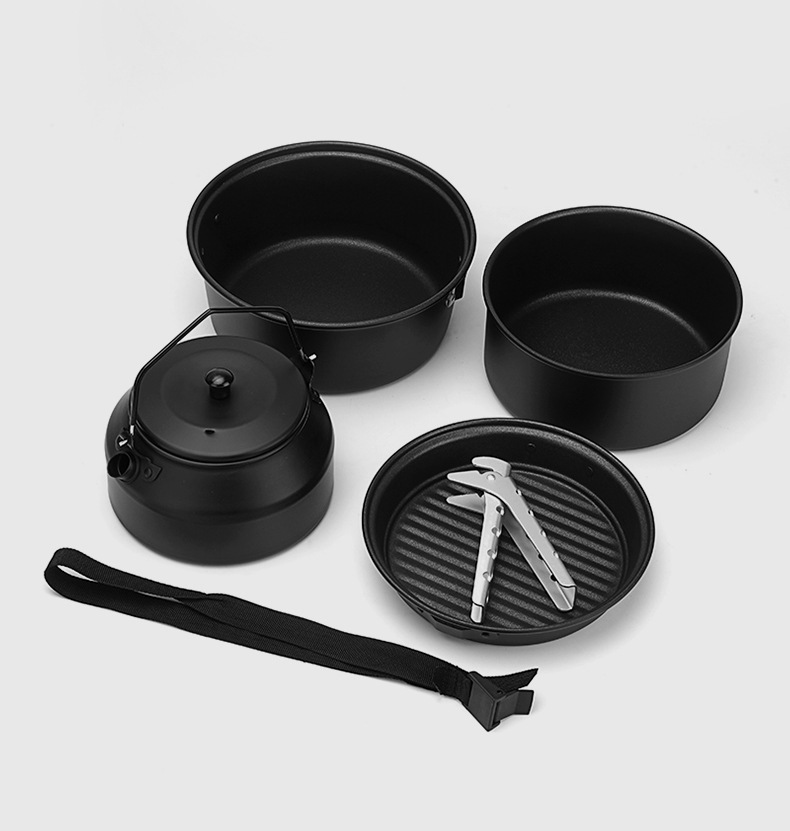 不粘涂层铝合金套锅烧水壶轻量便携露营锅煎盘户外野炊锅具套装