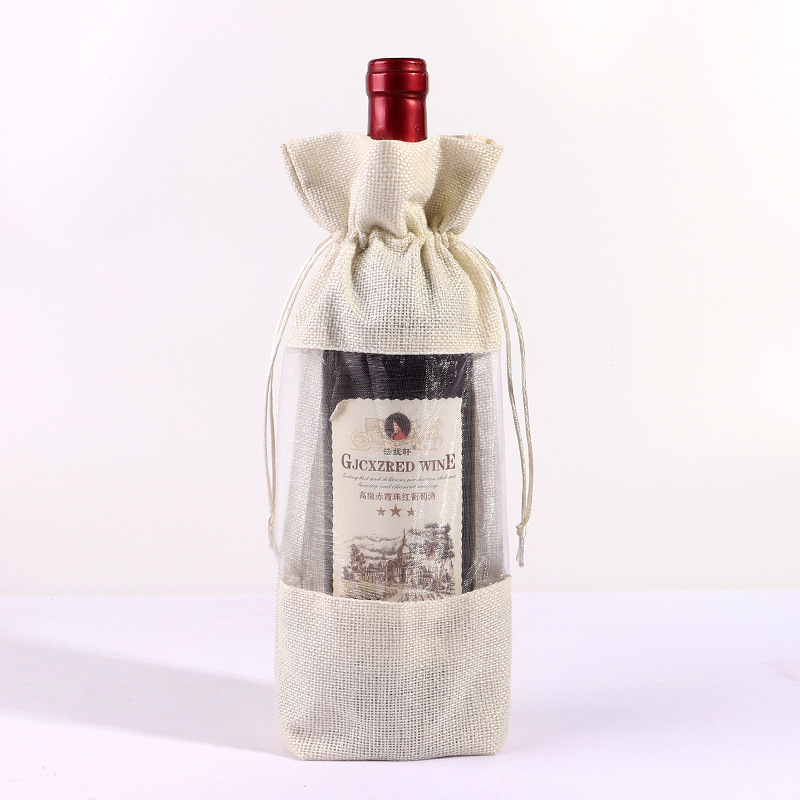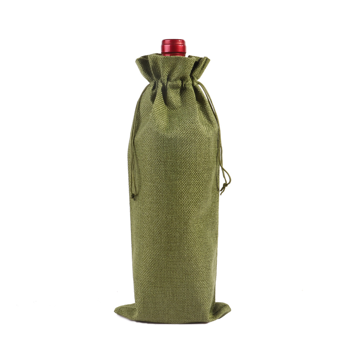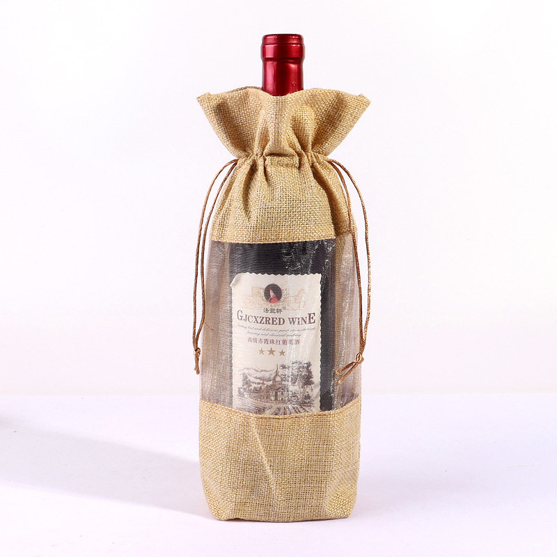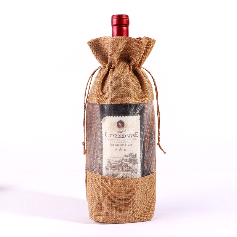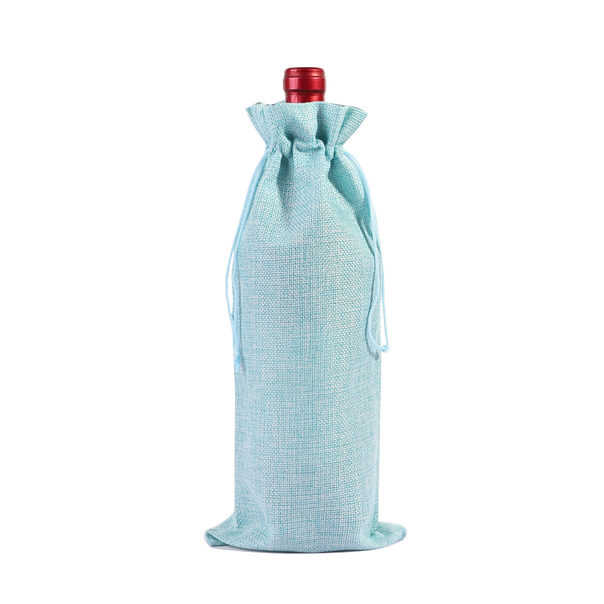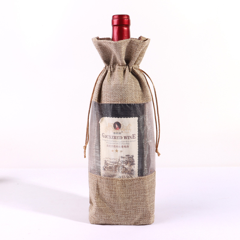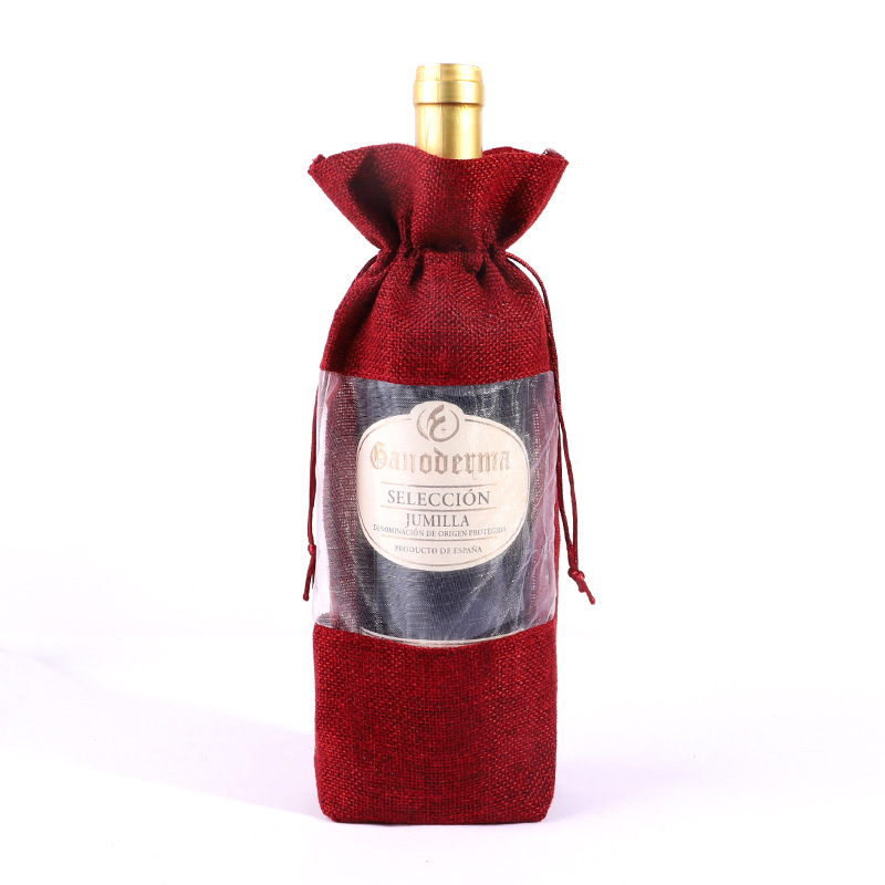 复合仿麻布红酒袋抽绳束口酒瓶袋圣诞亚麻布酒袋套装批发印LOGO