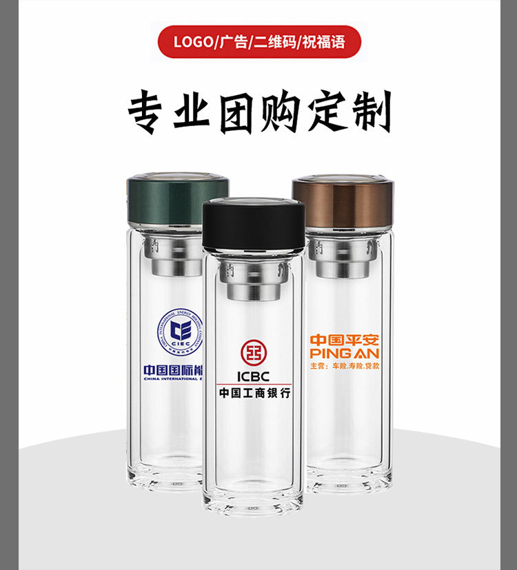 双层高硼硅玻璃杯印字批发水杯广告印字logo开业活动礼品杯