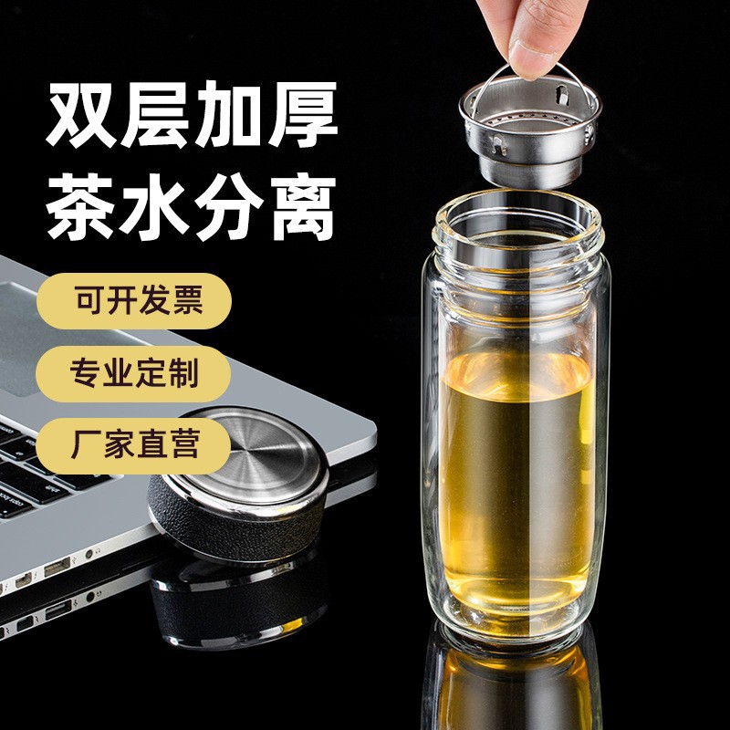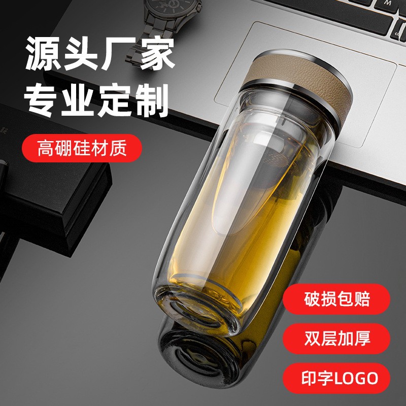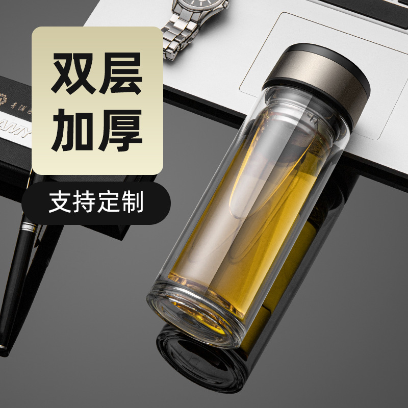 批发双层加厚鹅蛋玻璃杯印字logo耐高温促销广告礼品大容量水杯子