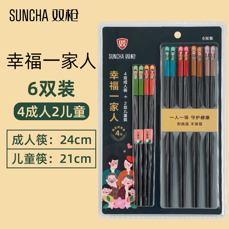 双枪合金筷家庭六人装分餐一人一筷耐高温餐具套装批发