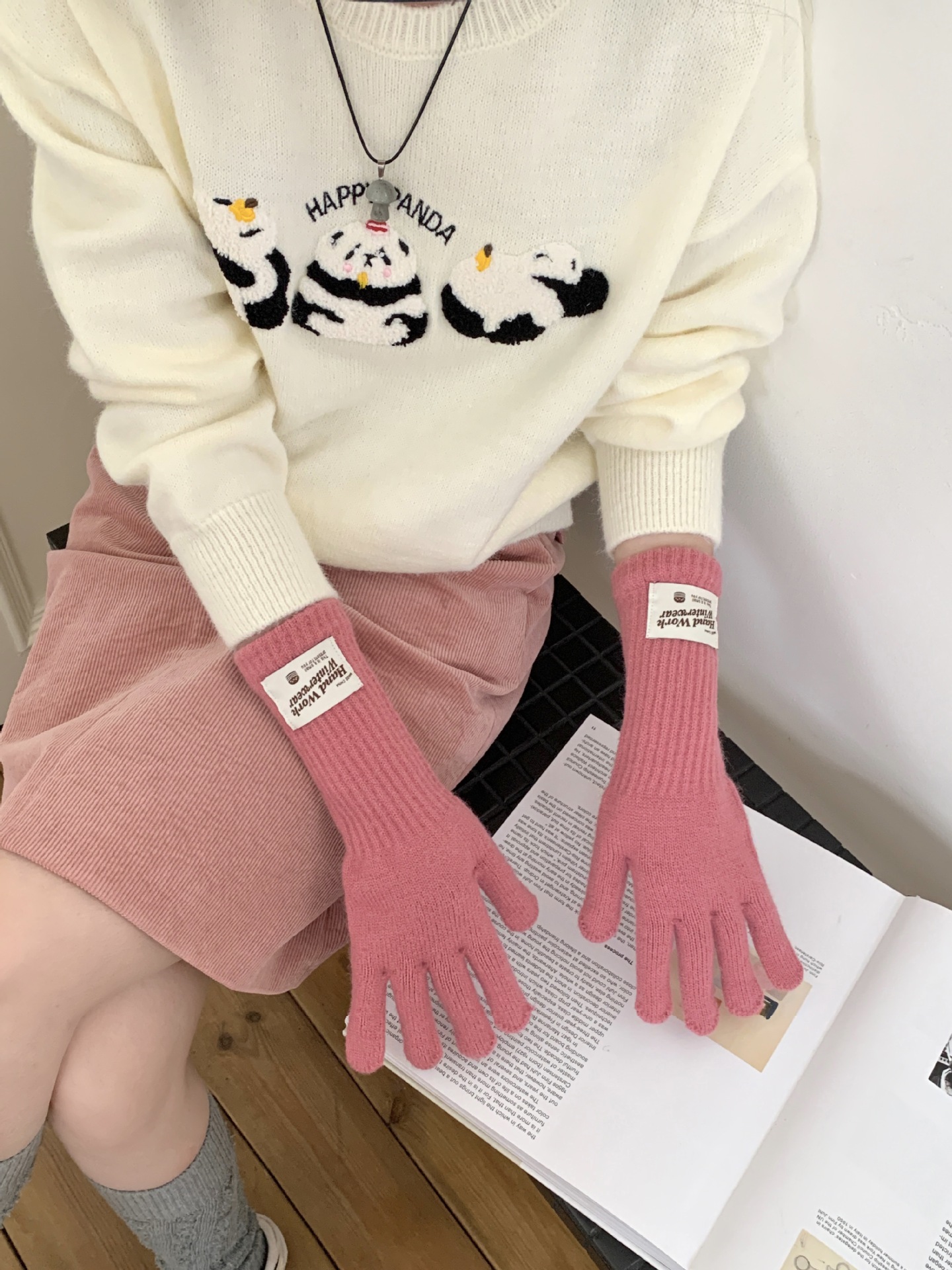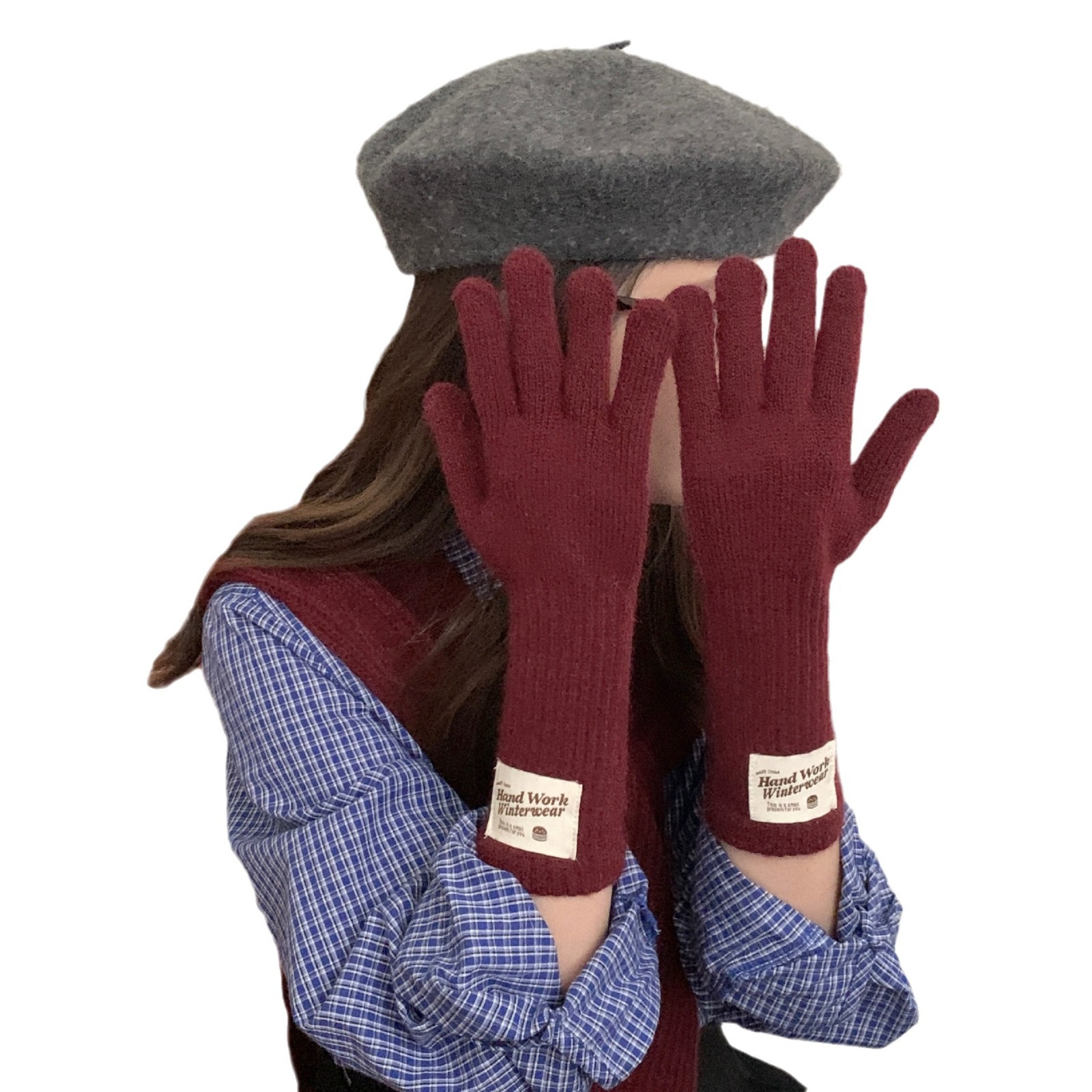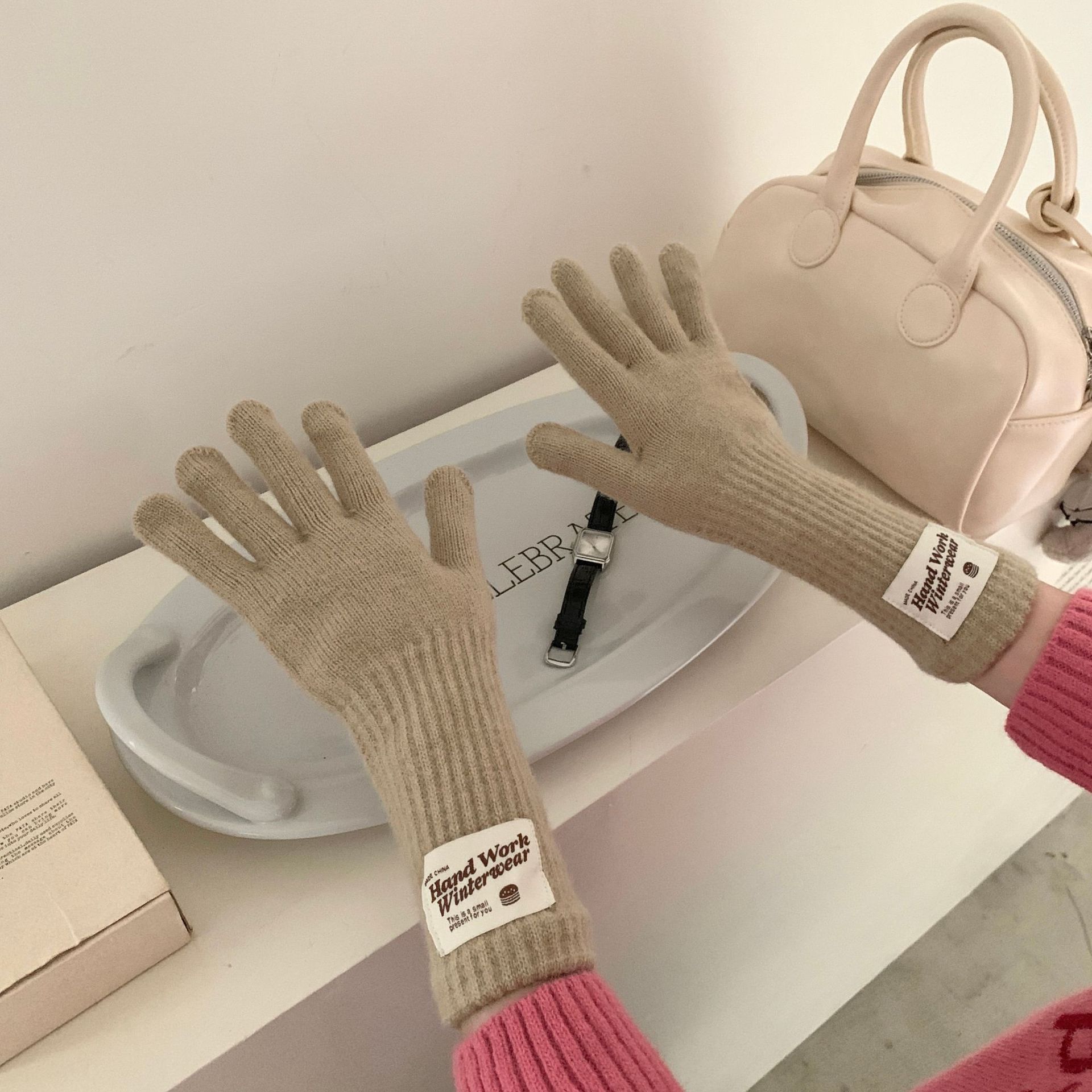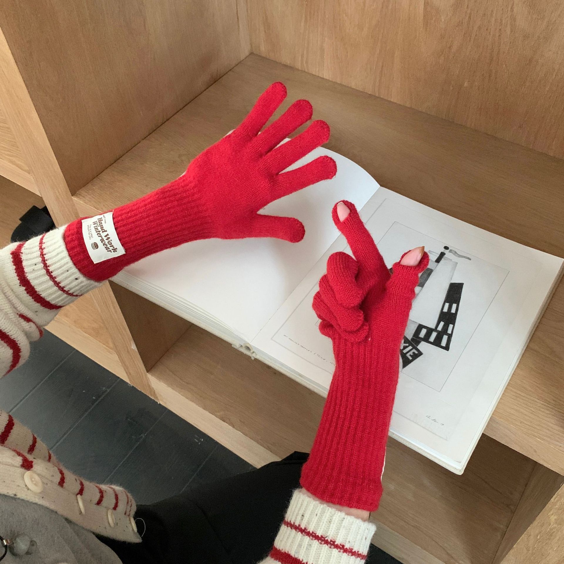 冬季纯色女手套保暖针织长款触屏露指防风五指骑行韩版潮情侣百搭