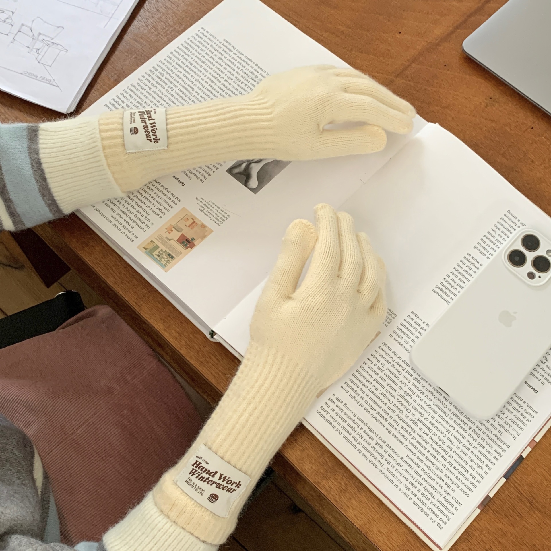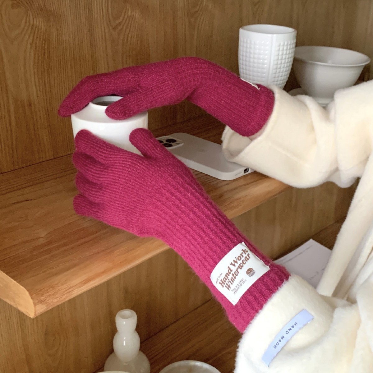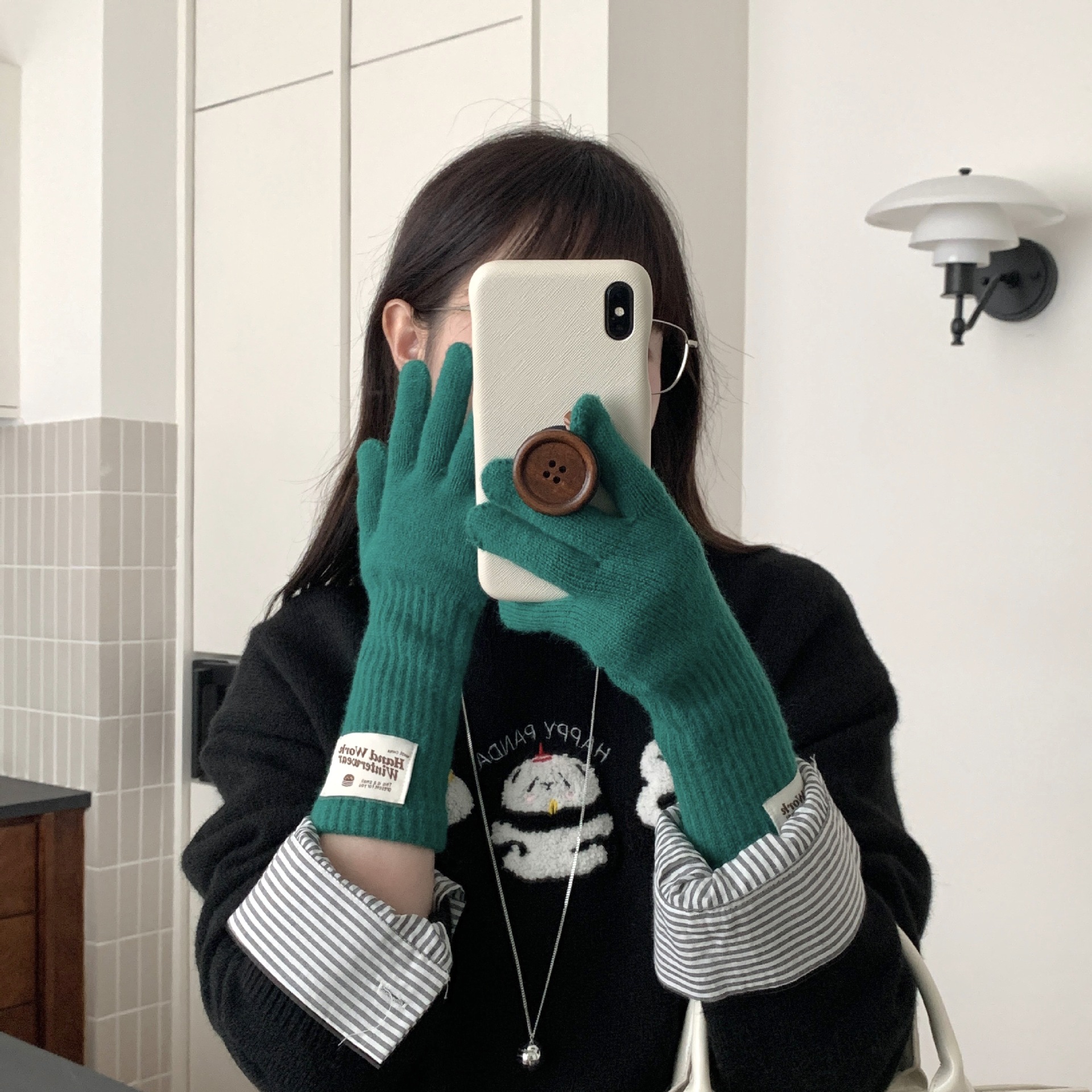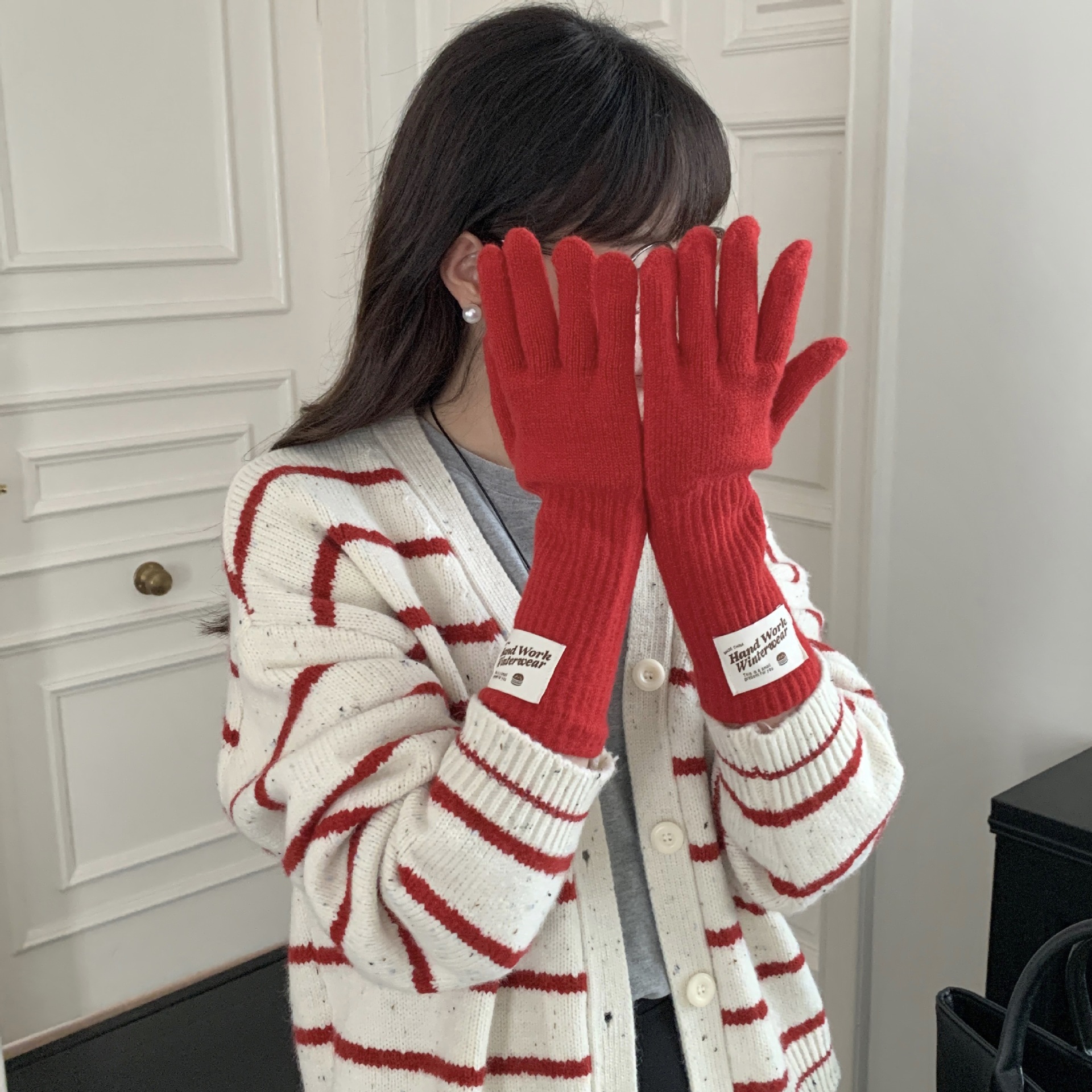 冬季纯色女手套保暖针织长款触屏露指防风五指骑行韩版潮情侣百搭