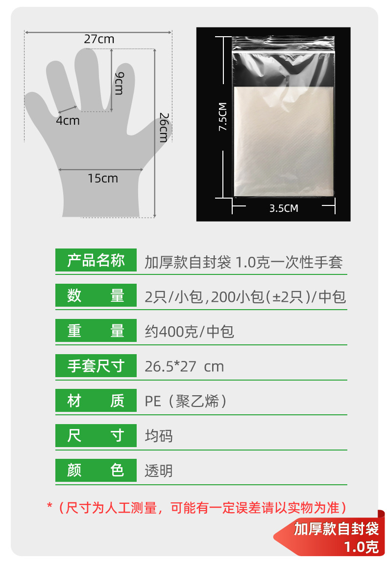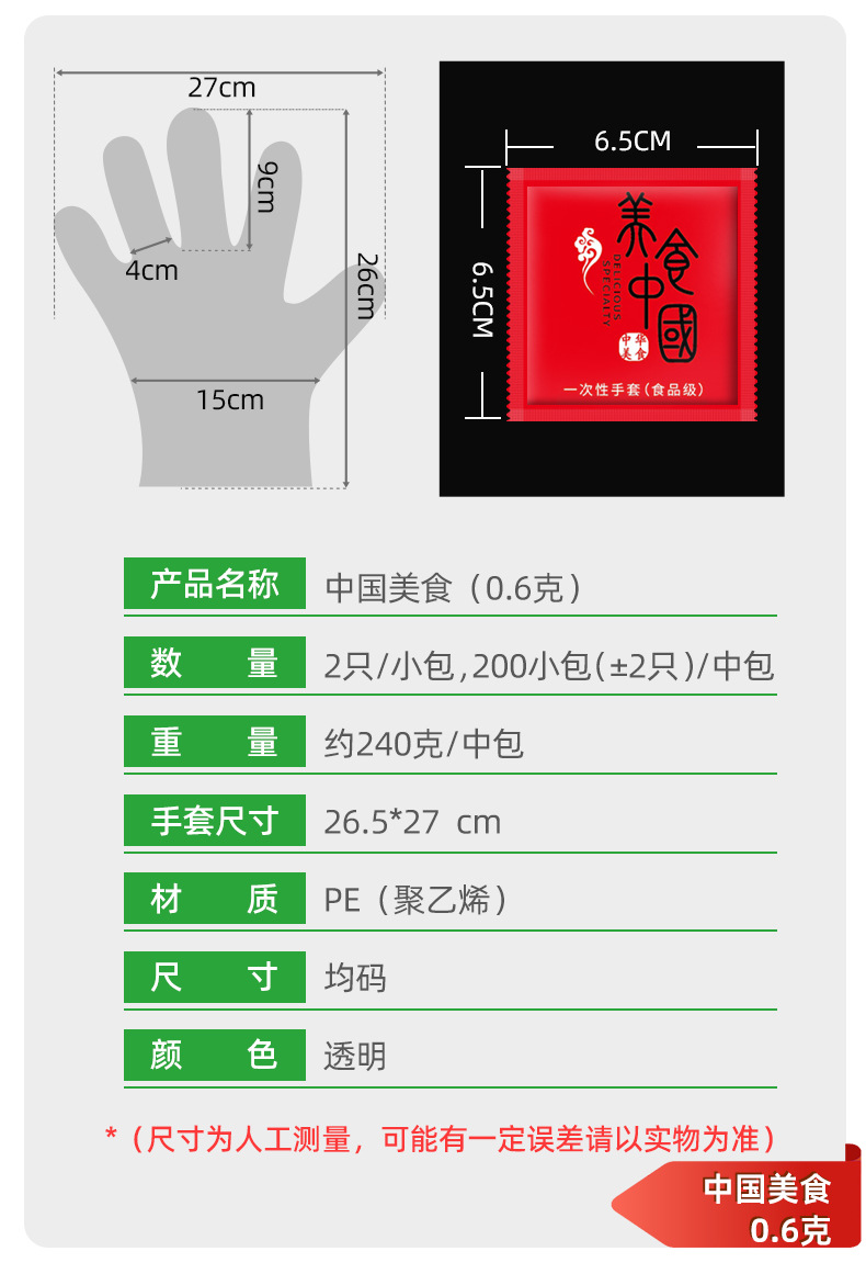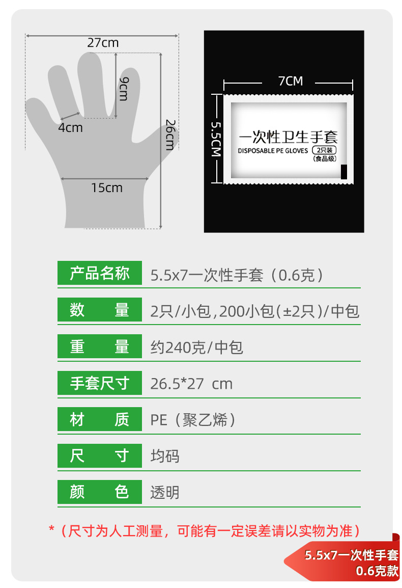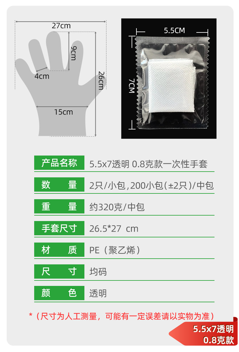 一次性手套独立包装一包两只食品级餐饮厨房透明塑料pe 独包小包