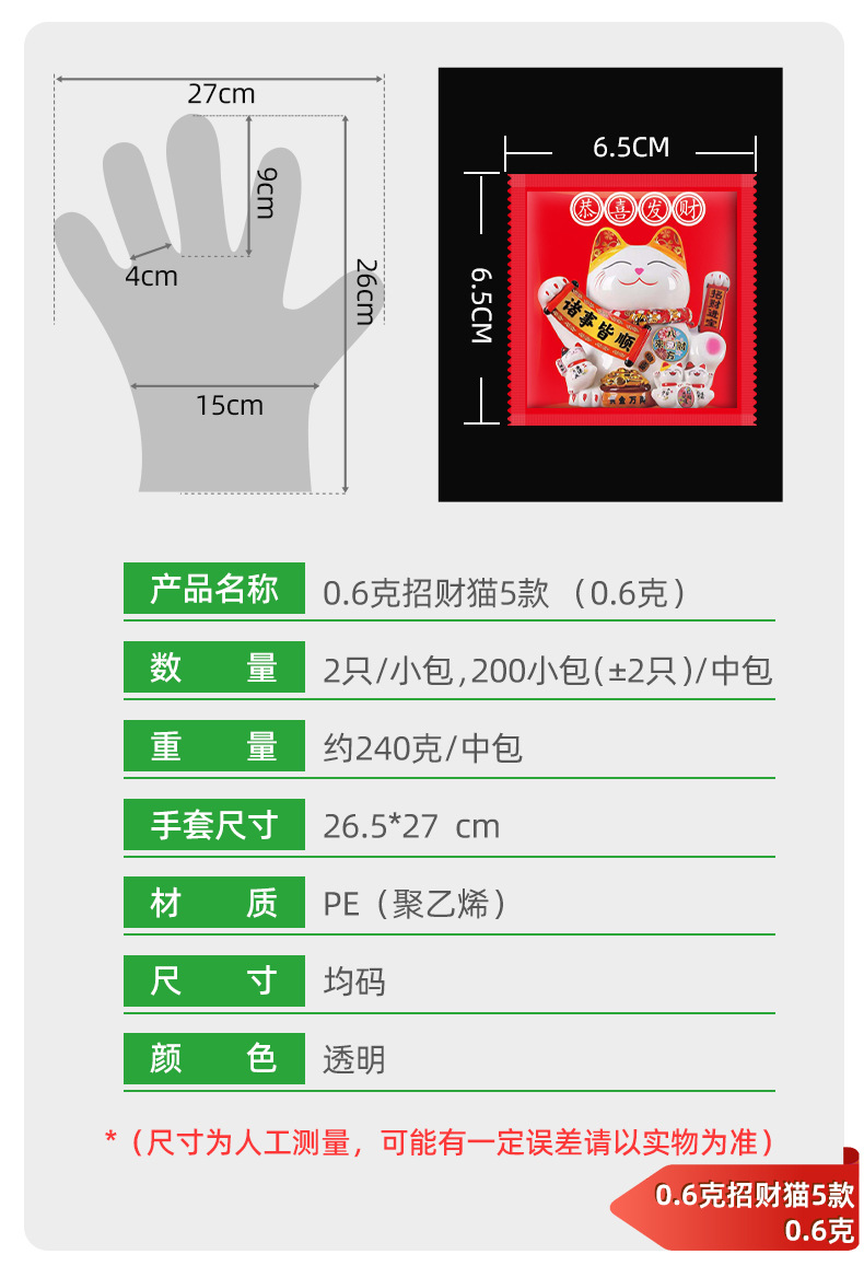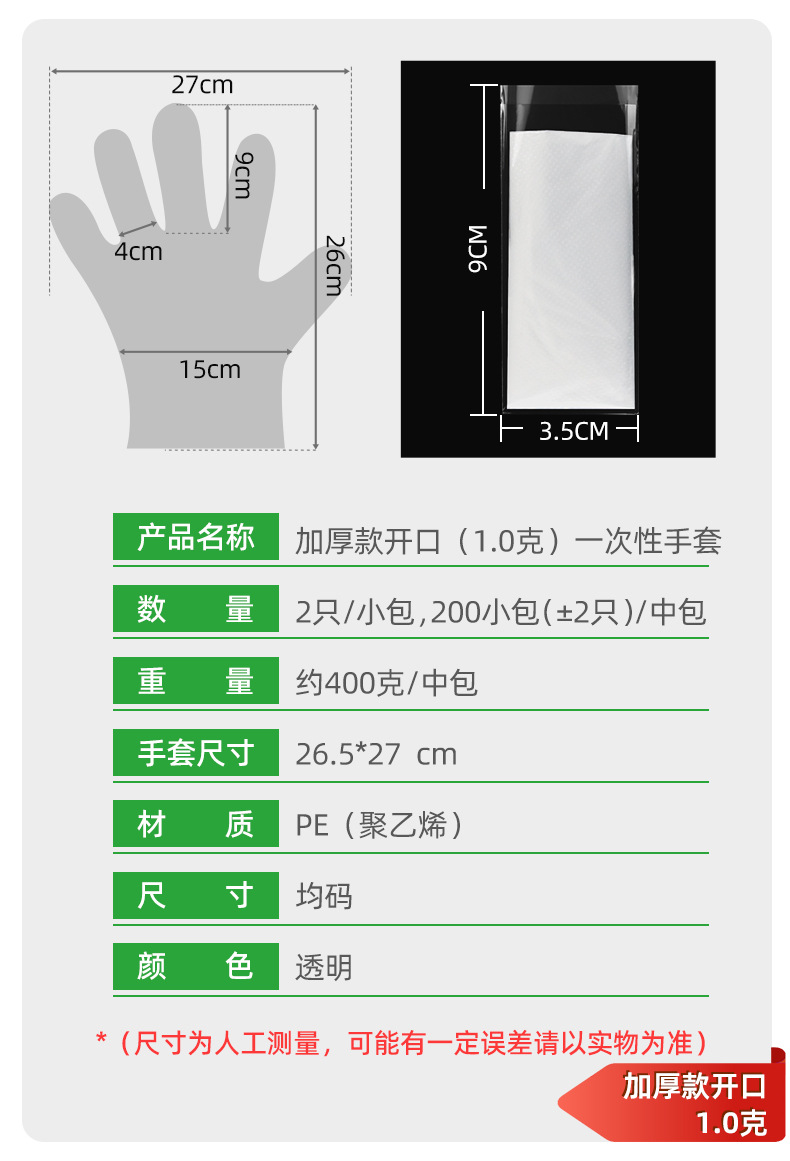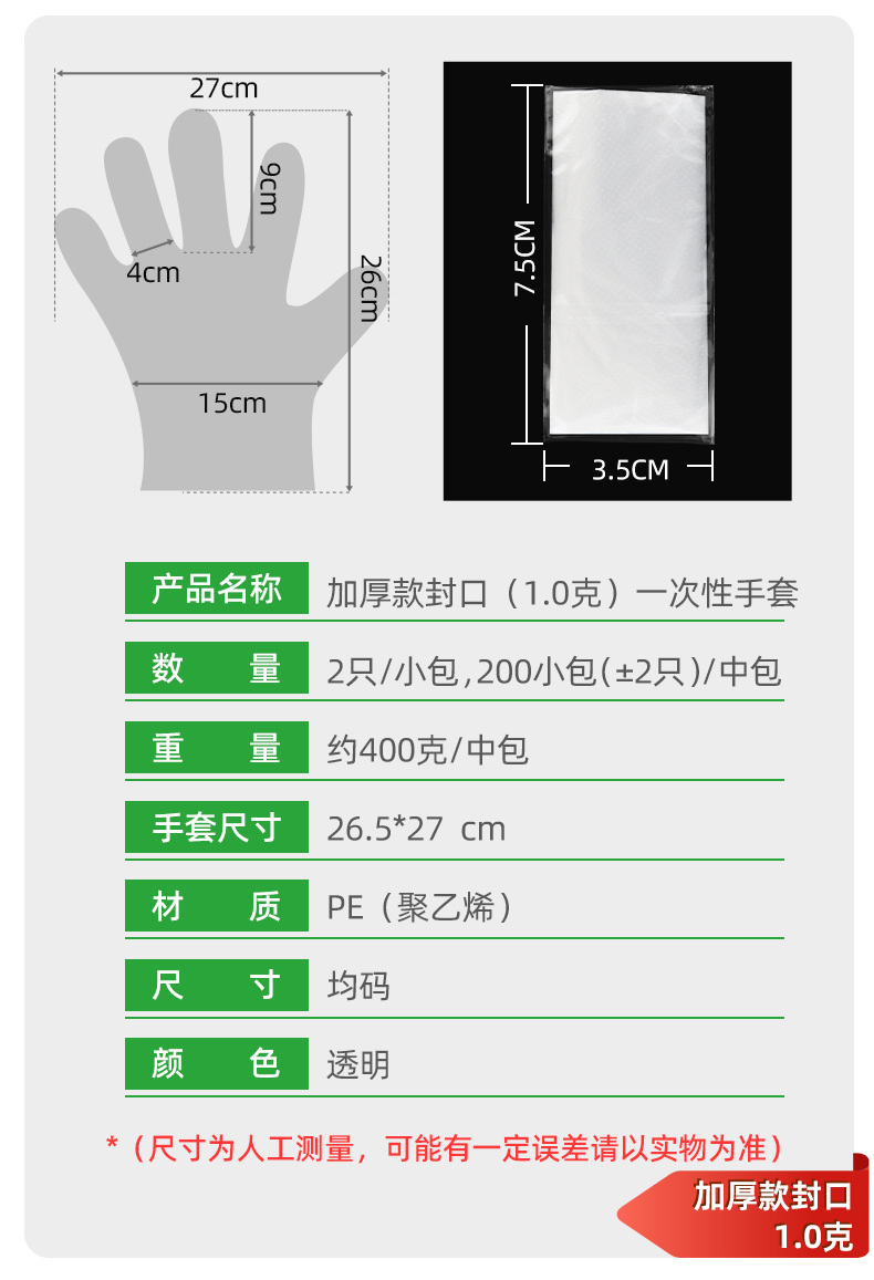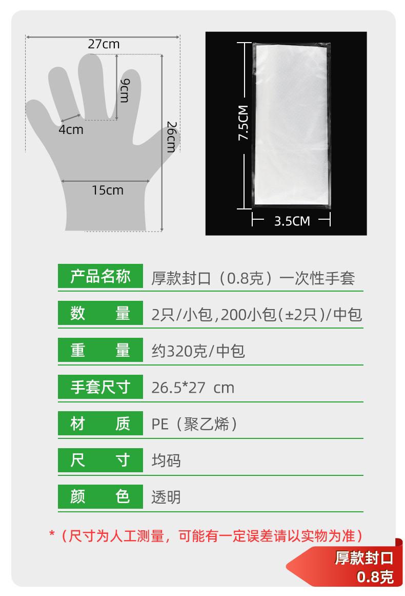 一次性手套独立包装一包两只食品级餐饮厨房透明塑料pe 独包小包