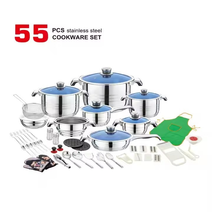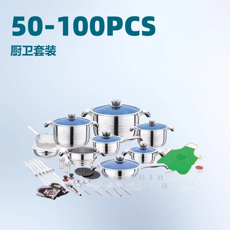 厂家批发外贸热销款不锈钢直形宽边汤锅50PCS件套锅炊具跨进