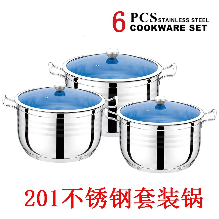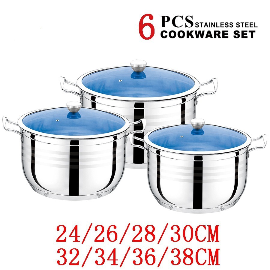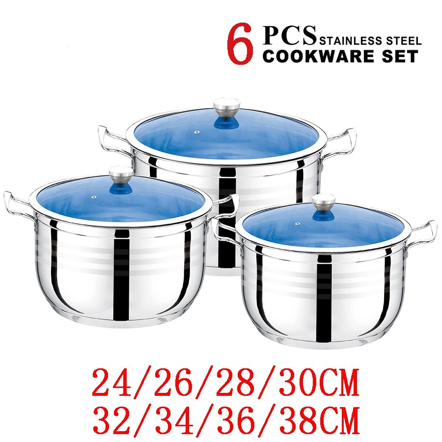 | 6-piece double bottom steel handle high pot (blueglass) (24.26.28)(6件套复底钢柄高锅(蓝玻) (24.26.28)) | USD $22.62 | 10000 set available |