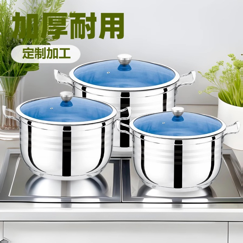 可加工加厚玻璃盖蒸锅批发礼品锅具套装商用复底不锈钢汤蒸锅