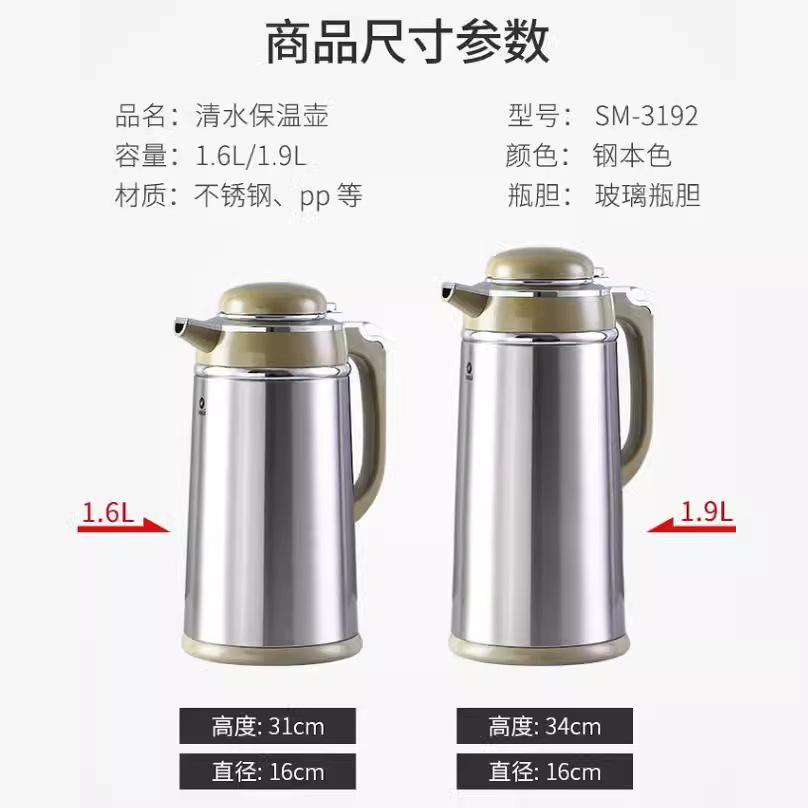 清水SM-3192办公保温暖瓶小暖壶不锈钢保温大容量热水瓶家用保温