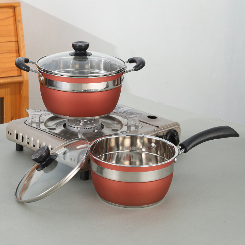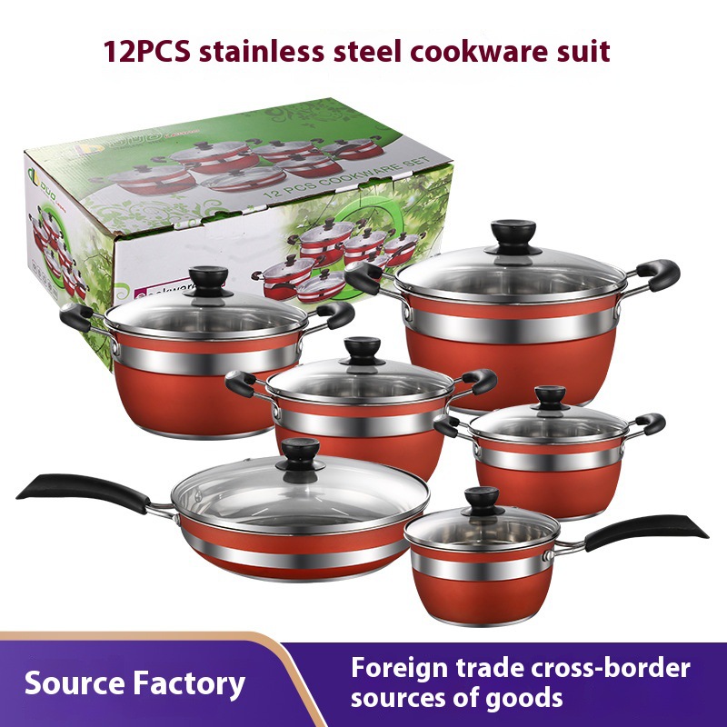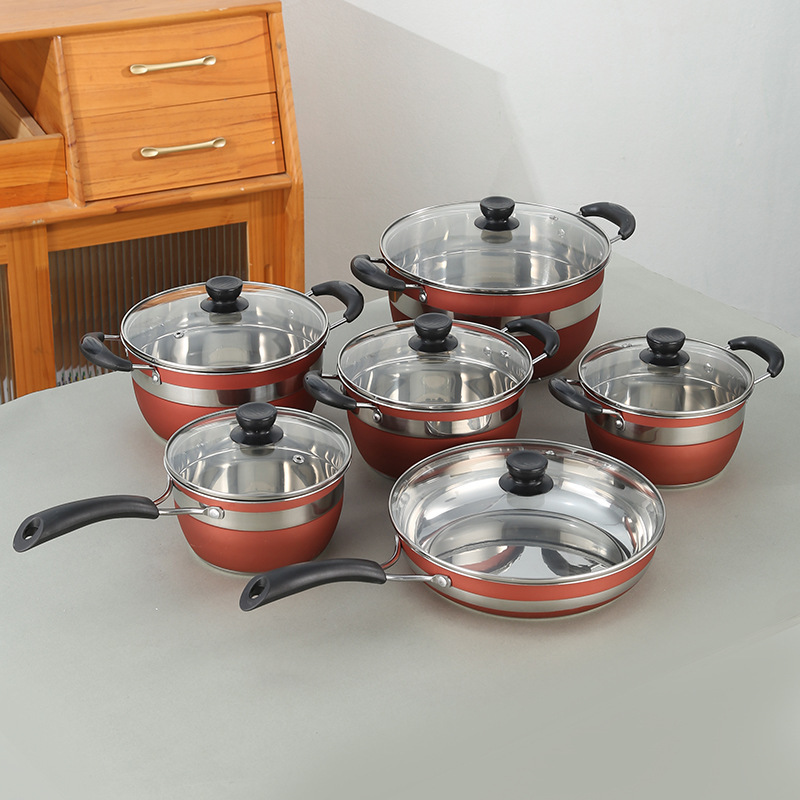 跨境爆款不锈钢12件套锅 外贸供应复底汤锅奶锅煎盘组合锅具套装