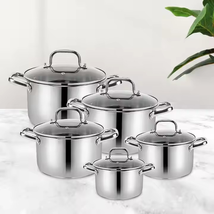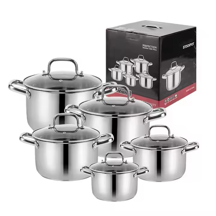 外贸热卖不锈钢12件套装锅活动礼品锅具 商用厨房汤锅10件套装锅