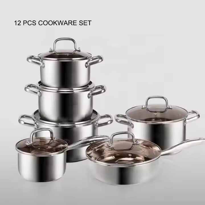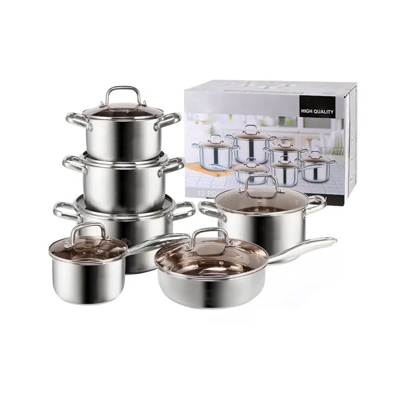 外贸热卖不锈钢12件套装锅活动礼品锅具 商用厨房汤锅10件套装锅