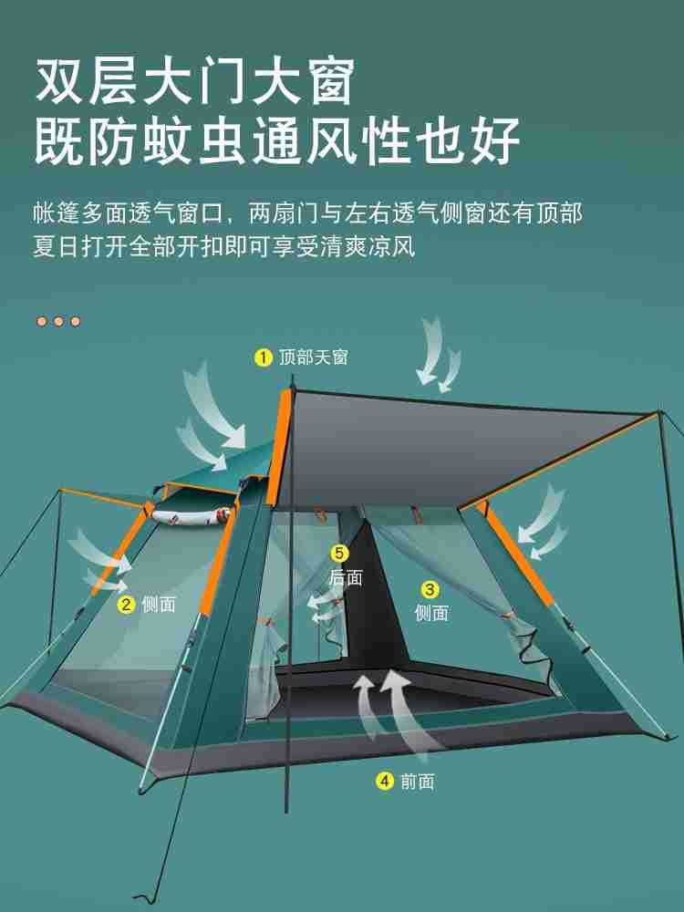 帐篷户外3-4人野营加厚全自动超轻便装备野外露营防雨沙滩四面帐
