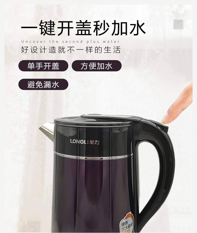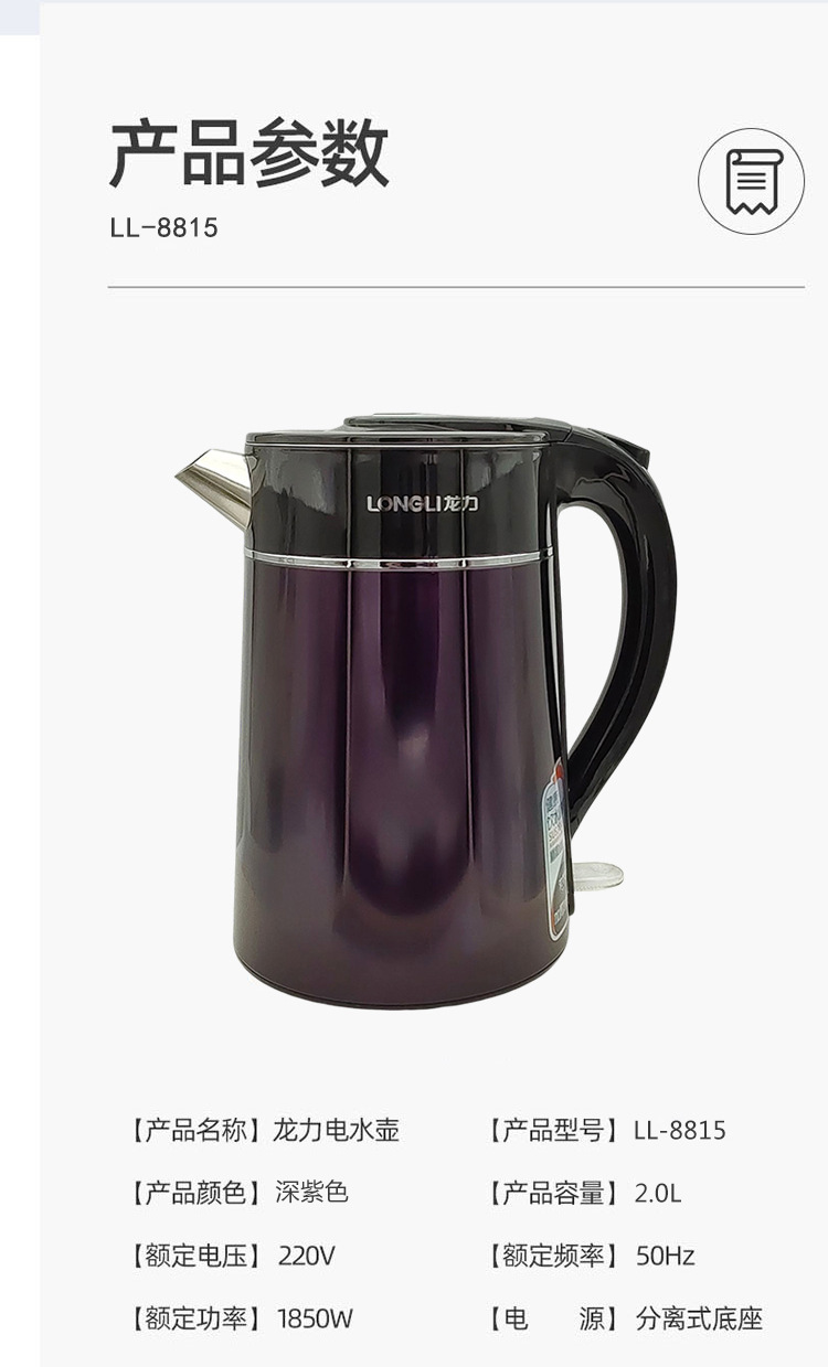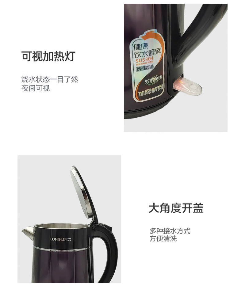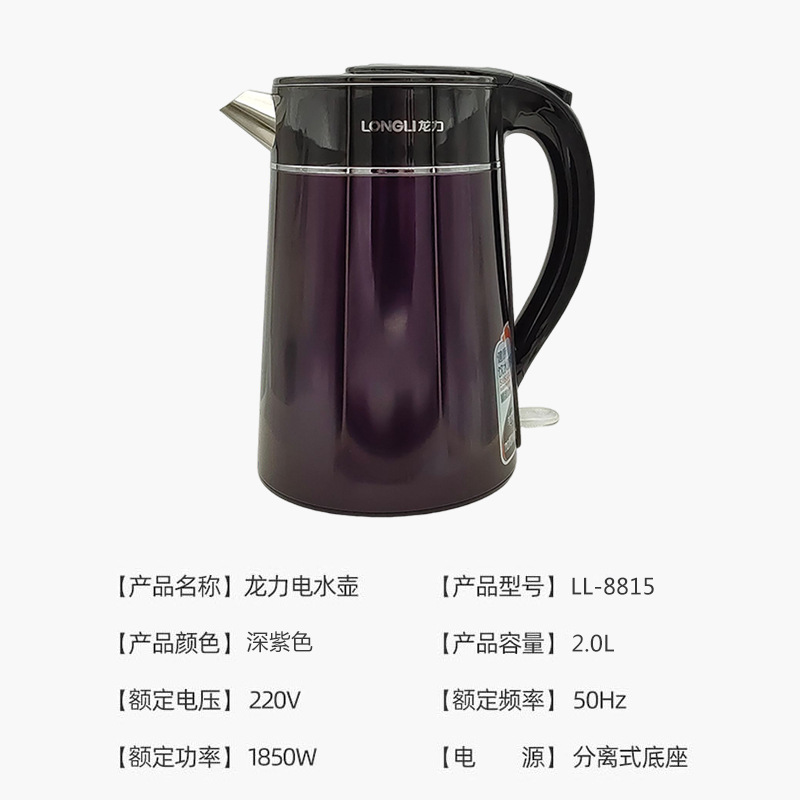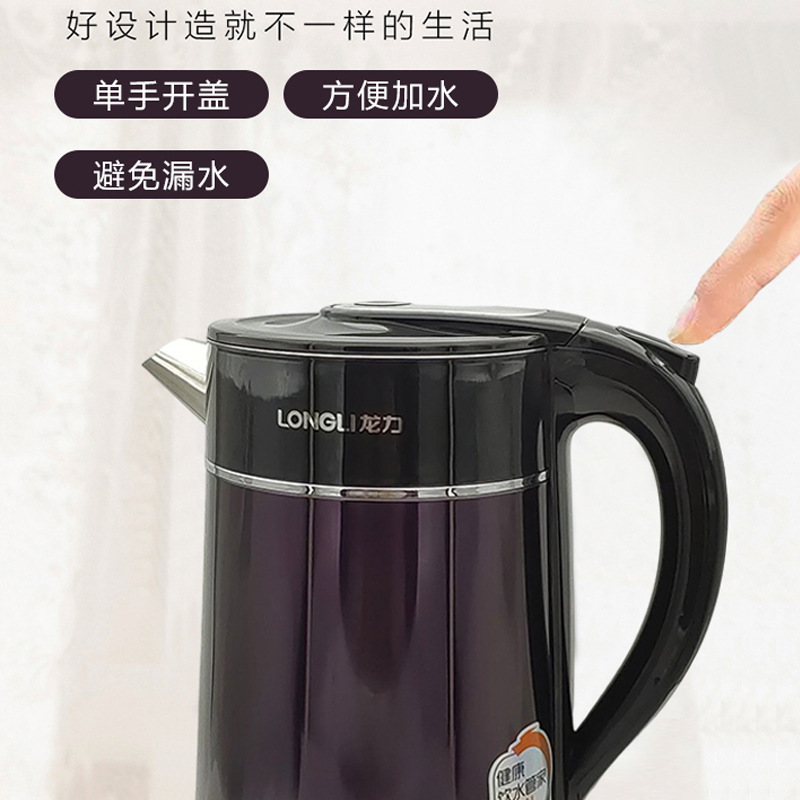 龙力8815电烧水壶家用不锈钢食品级304保温自动断电现货批发代发