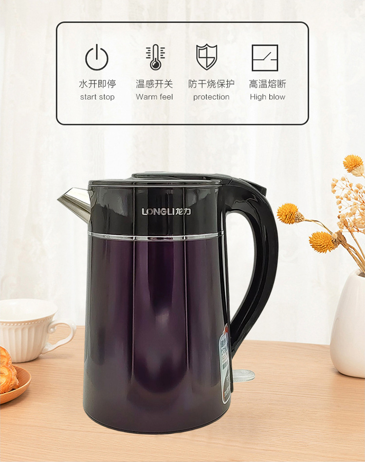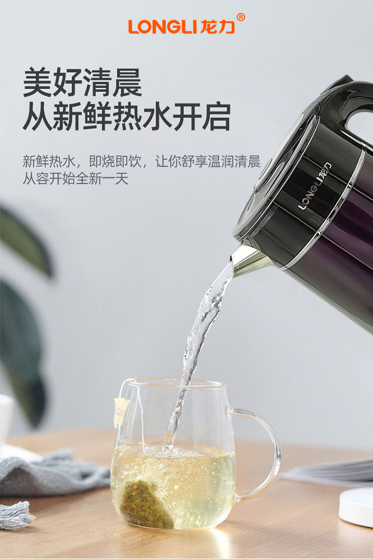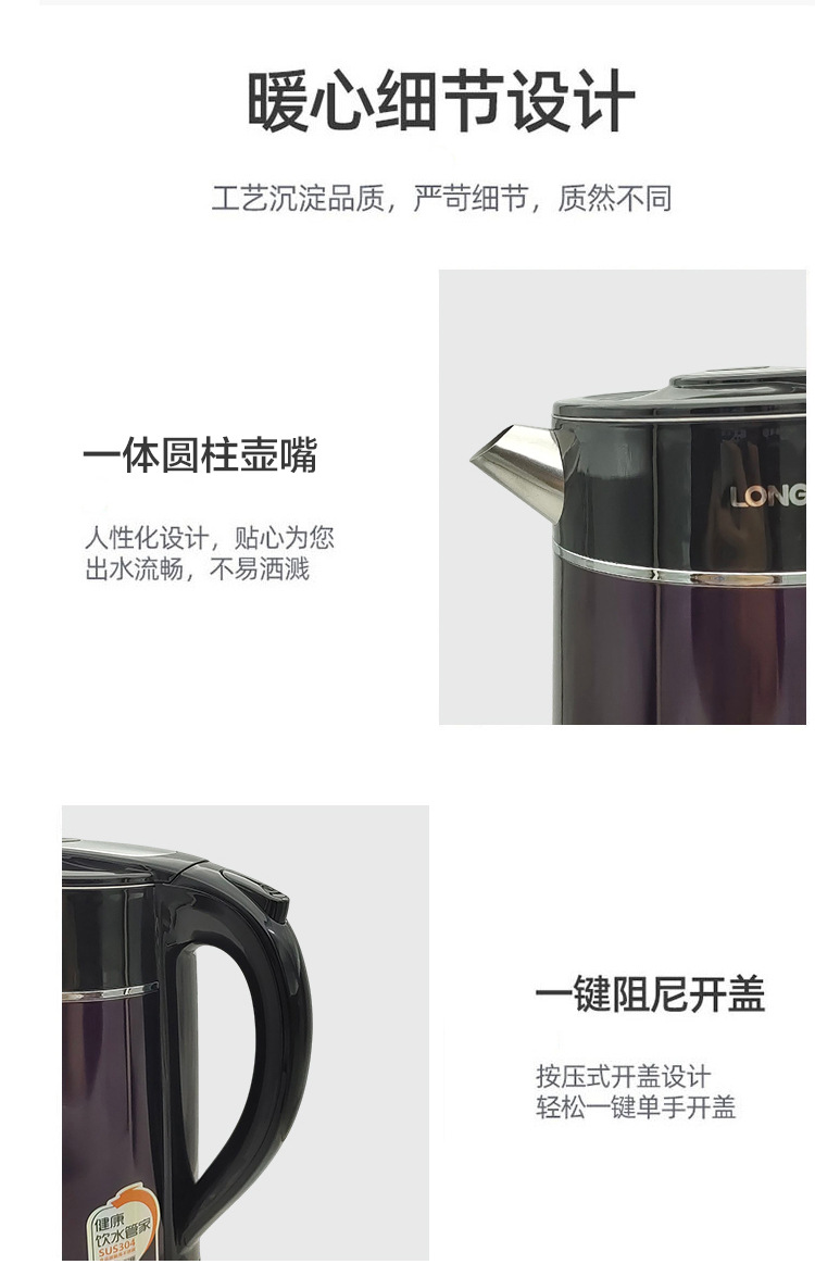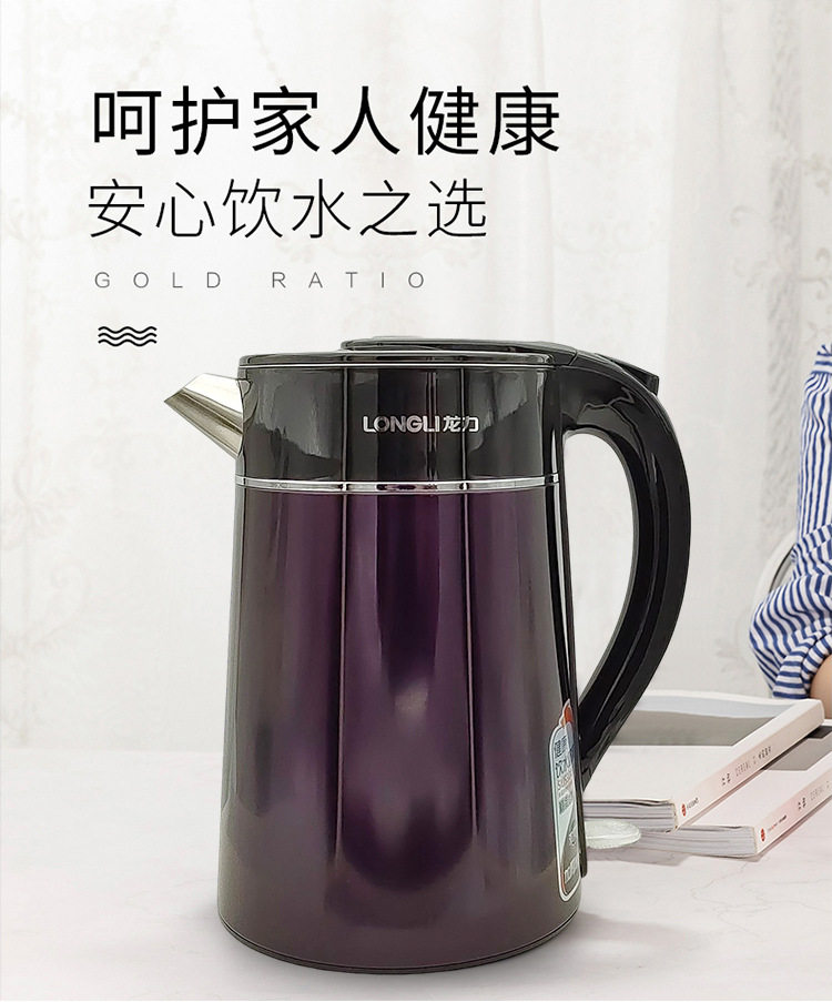 龙力8815电烧水壶家用不锈钢食品级304保温自动断电现货批发代发