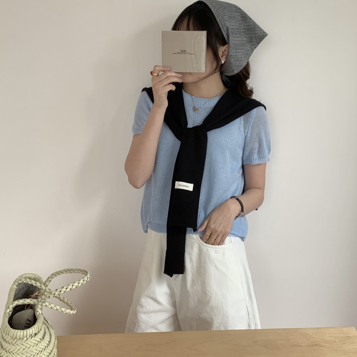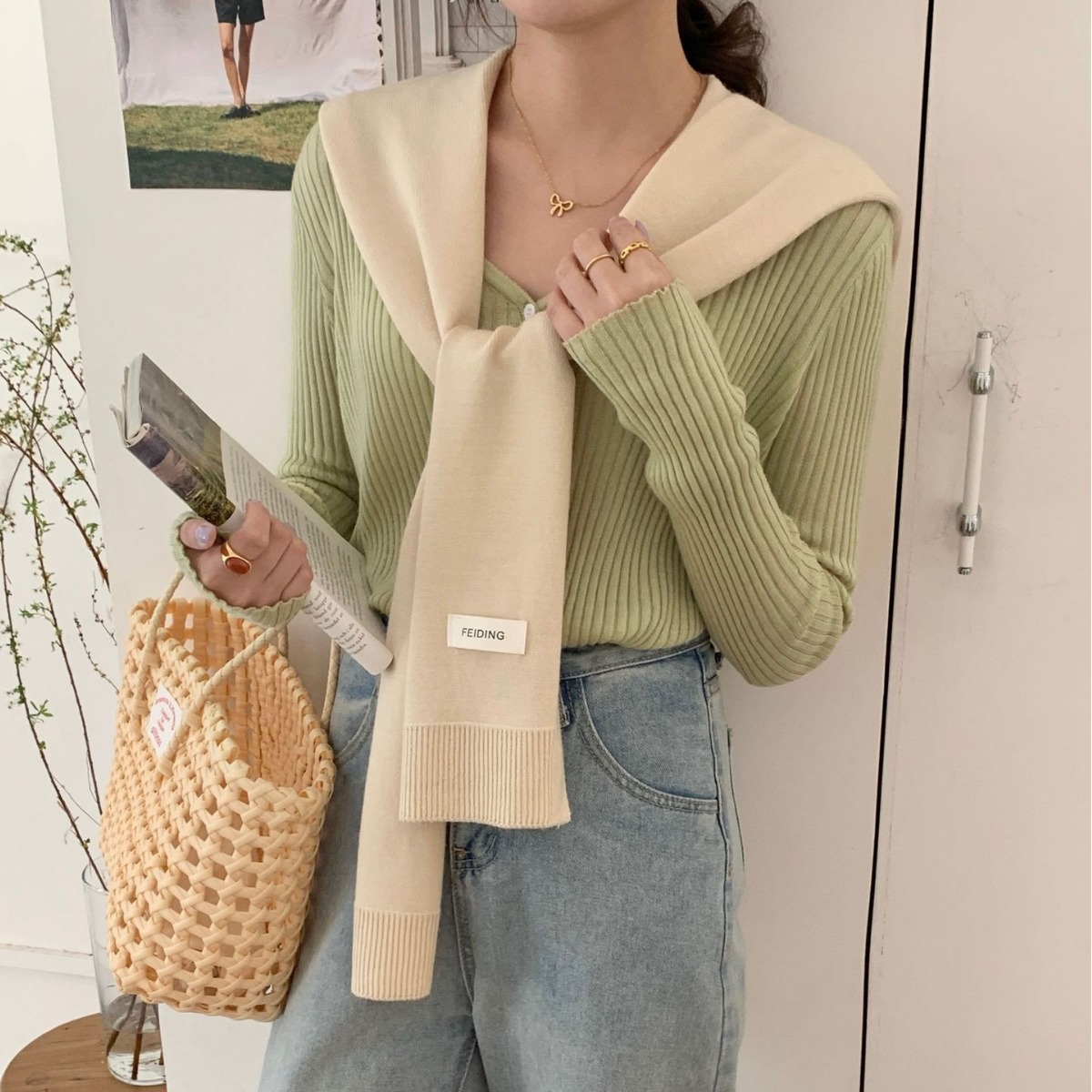 韩版女款春夏披肩防晒条纹外搭针织拼色百搭时尚小方巾搭肩坎肩