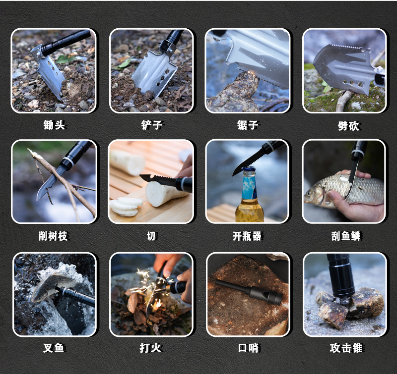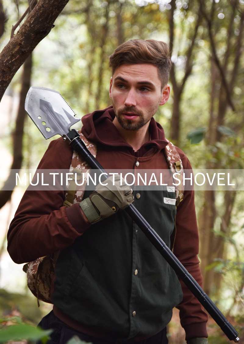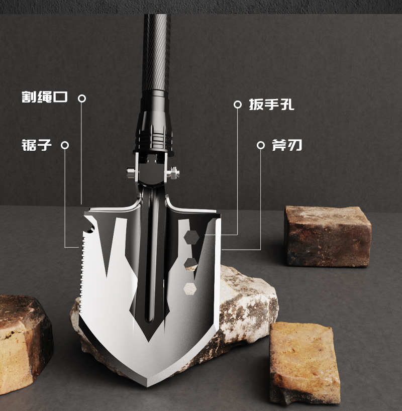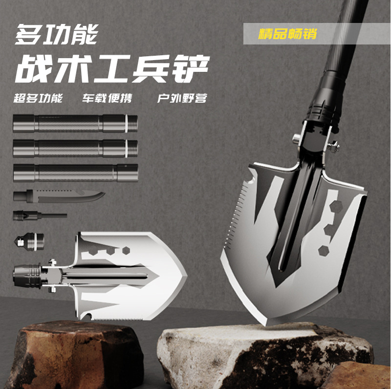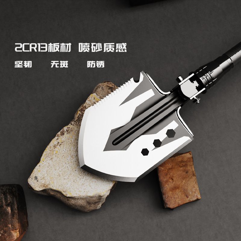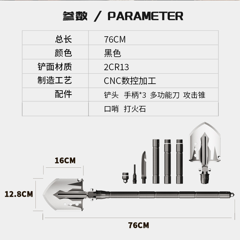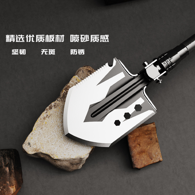 户外多功能折叠兵工铲 不锈钢野营求生车载折叠装备防身工兵铲子