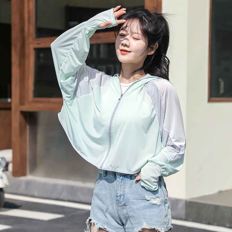 防晒衣女2024新款冰丝拼色薄款透气防紫外线防晒服女户外骑车外套
