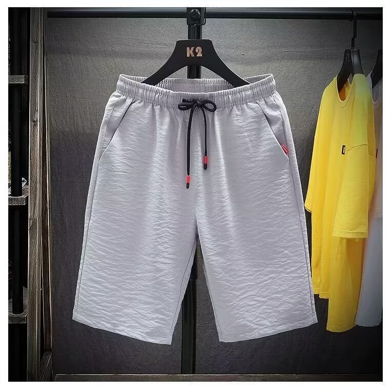 夏季冰丝五分短裤男士大码外穿运动裤休闲沙滩裤中裤子外贸代发