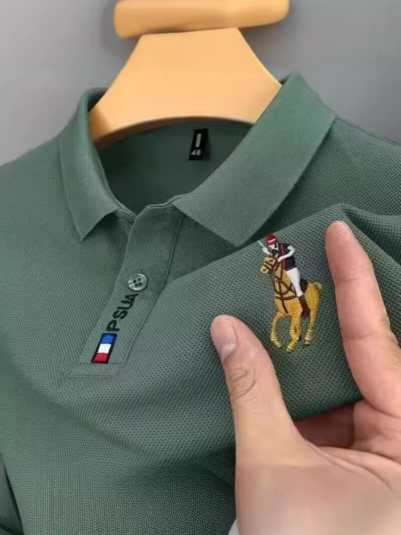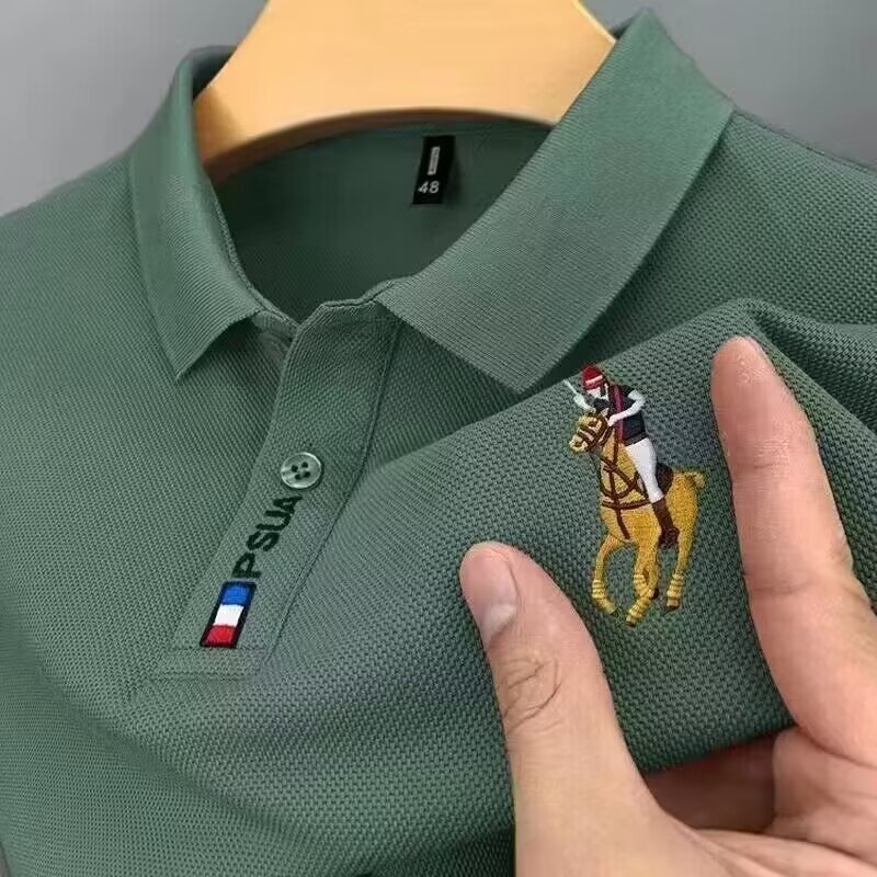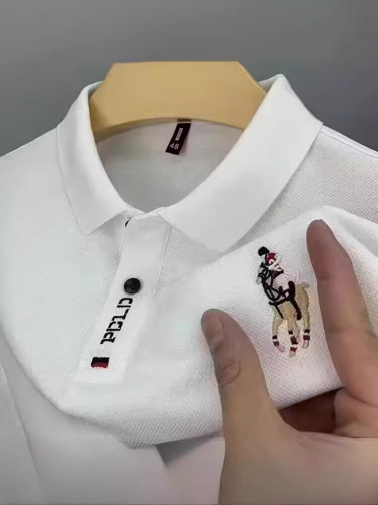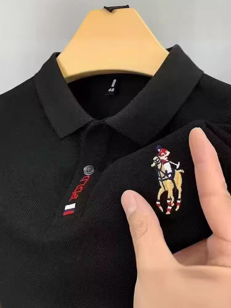 商务外贸衫夏季男装短袖T恤刺绣翻领大码POLO衫潮流纯色男装上衣