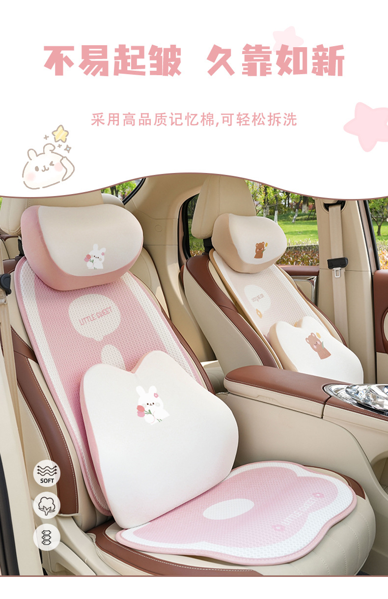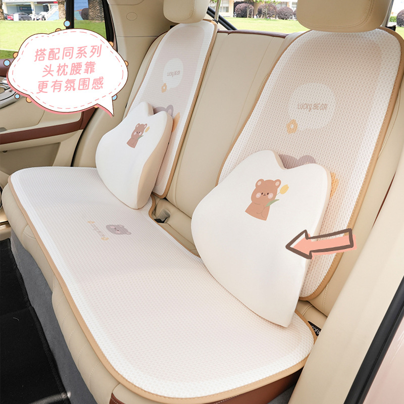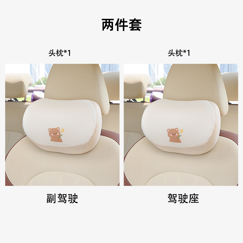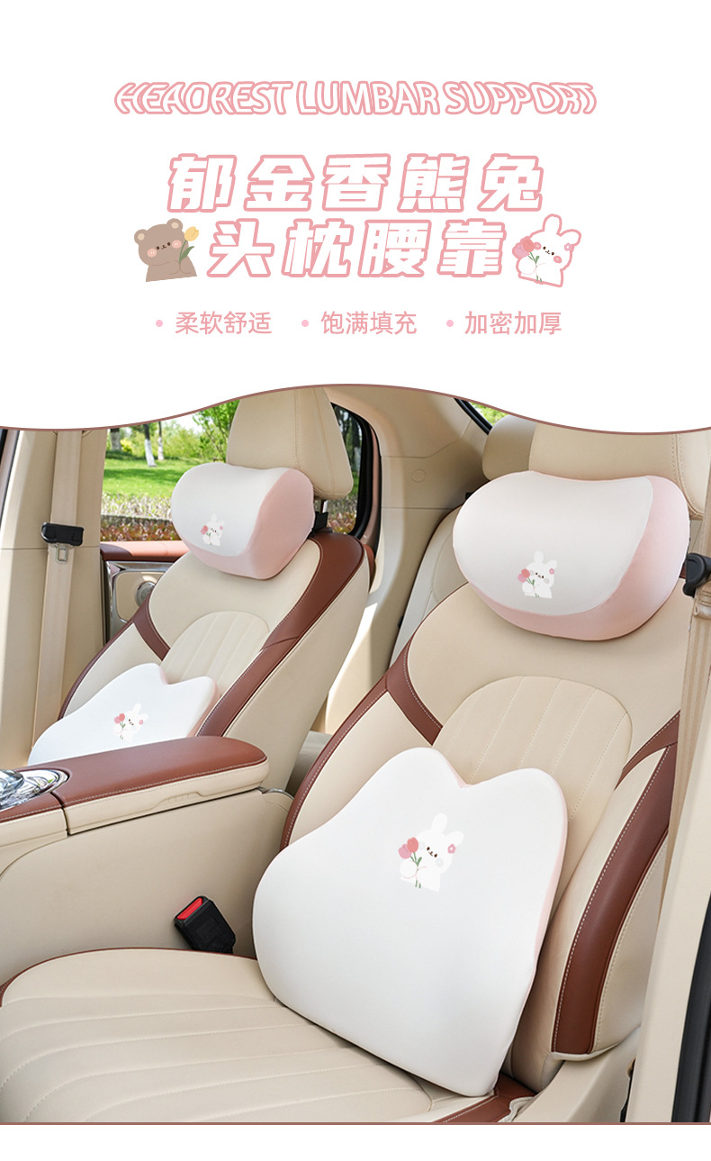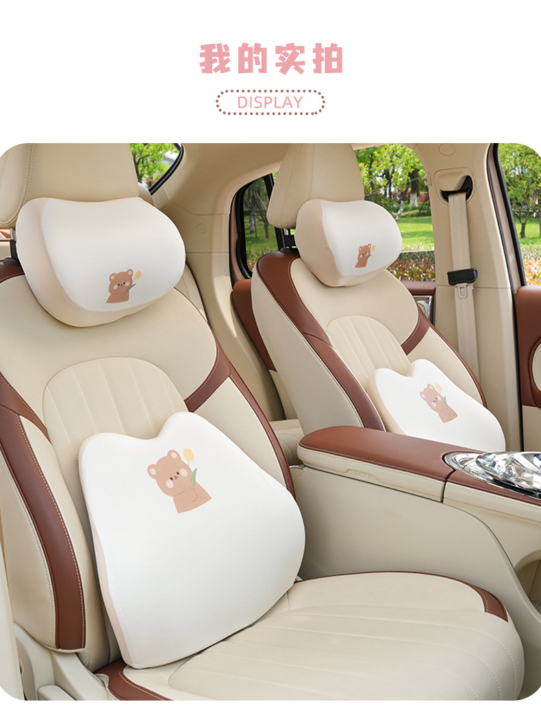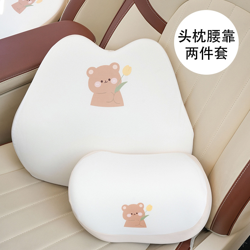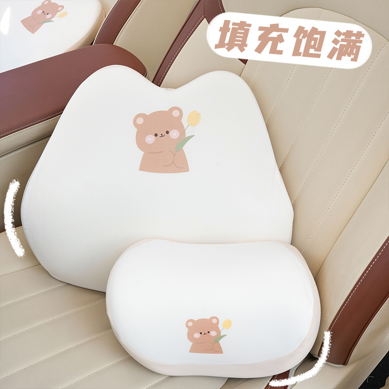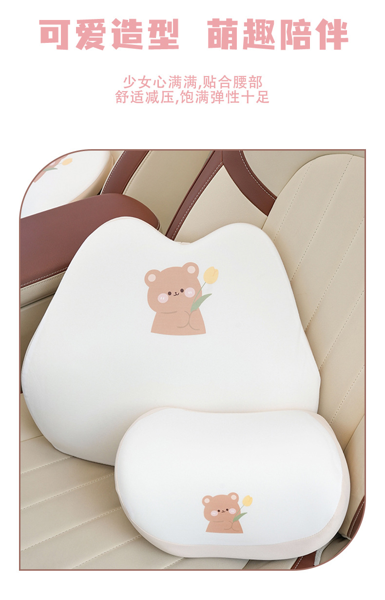 汽车头枕 可爱郁金香小熊车用记忆棉柔软腰靠垫 夏季通用汽车靠枕