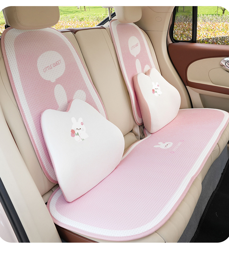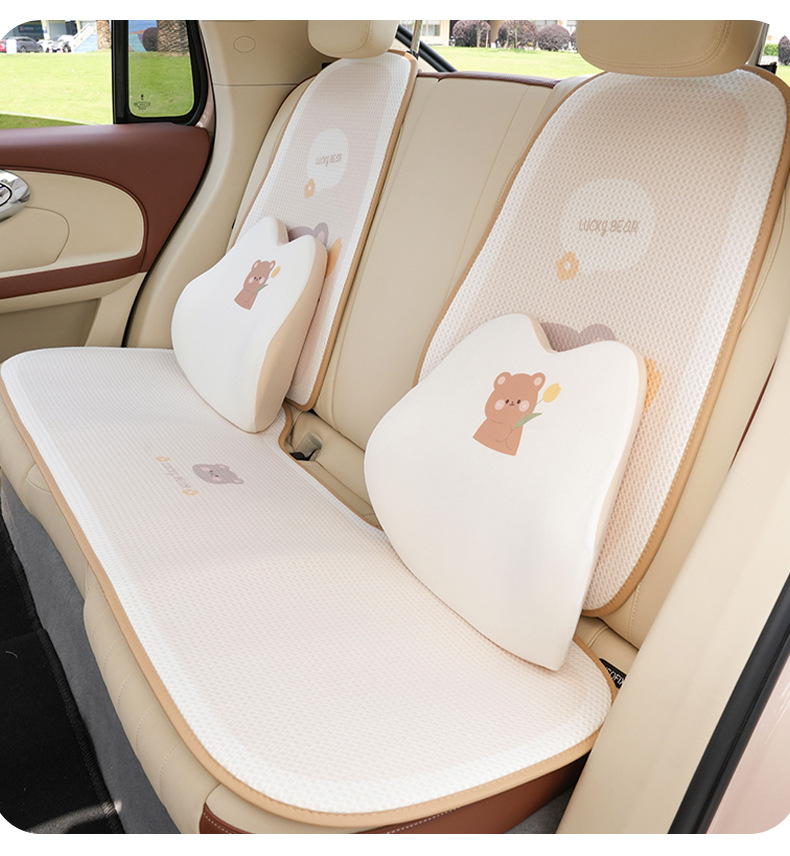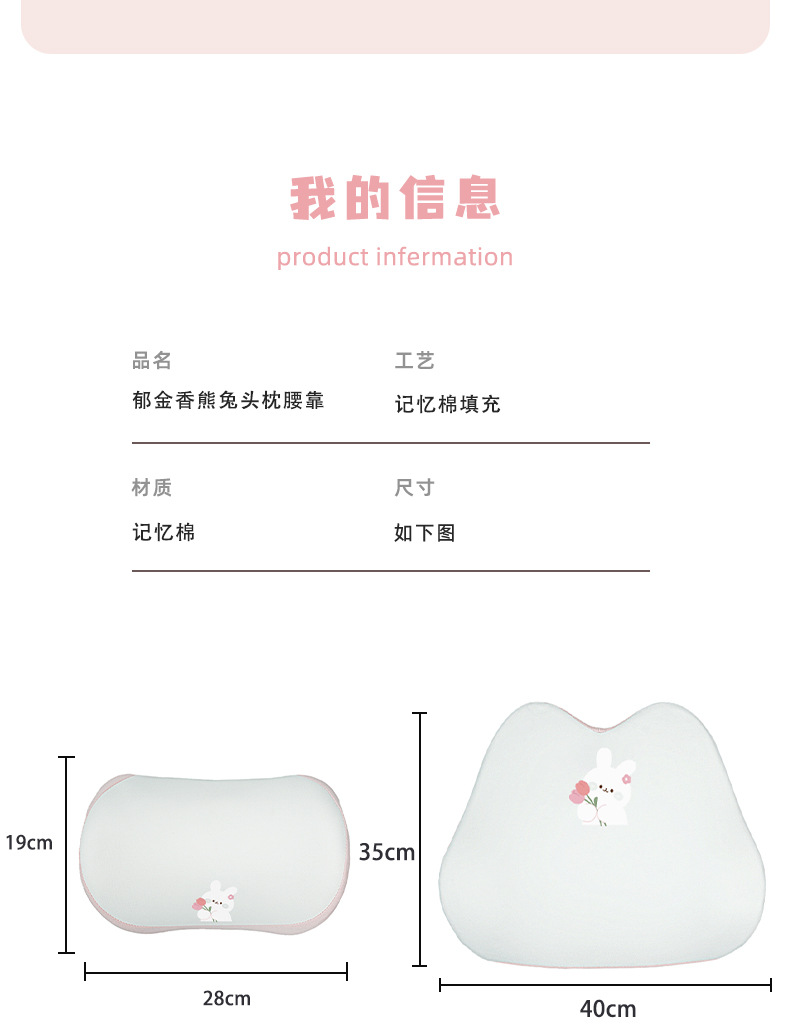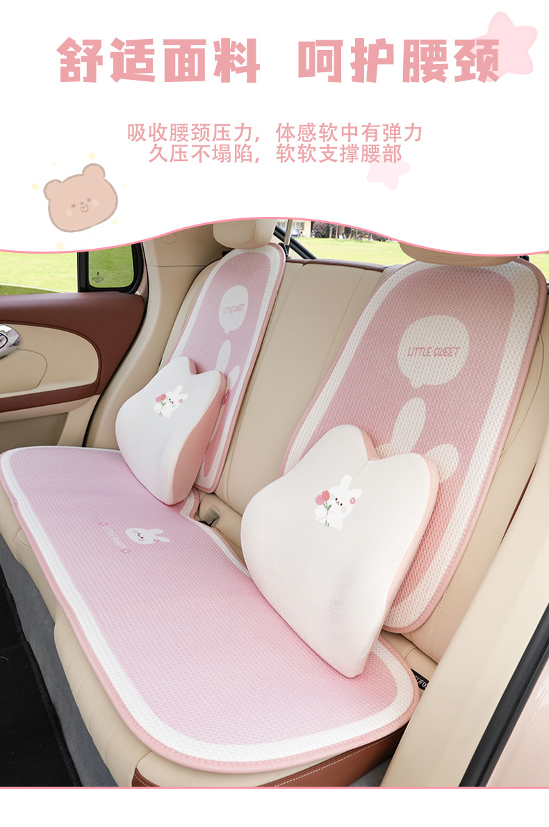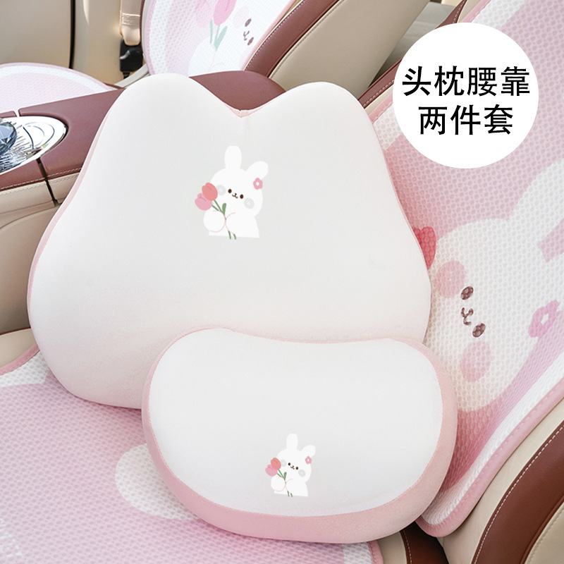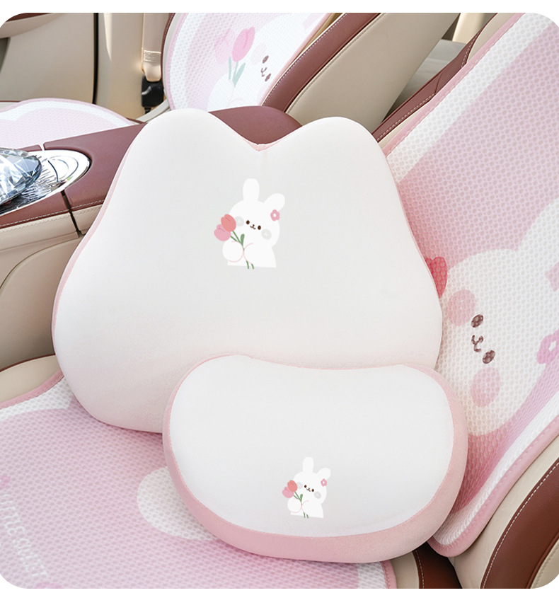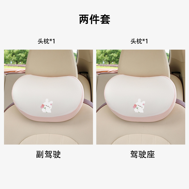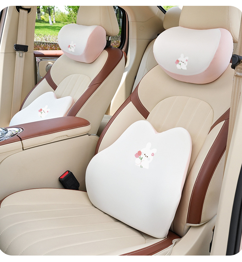 汽车头枕 可爱郁金香小熊车用记忆棉柔软腰靠垫 夏季通用汽车靠枕