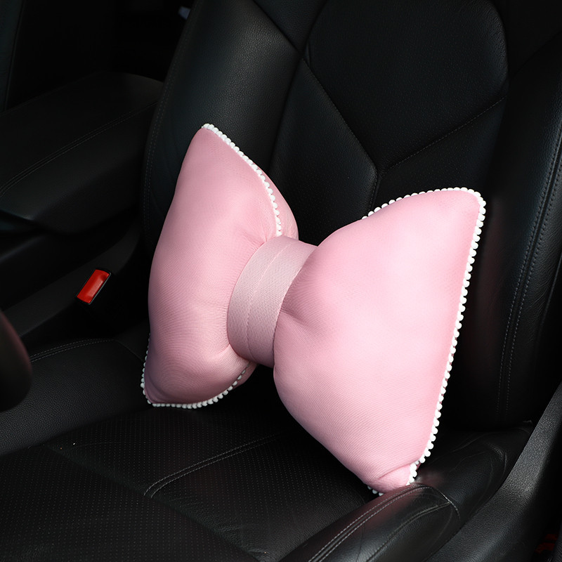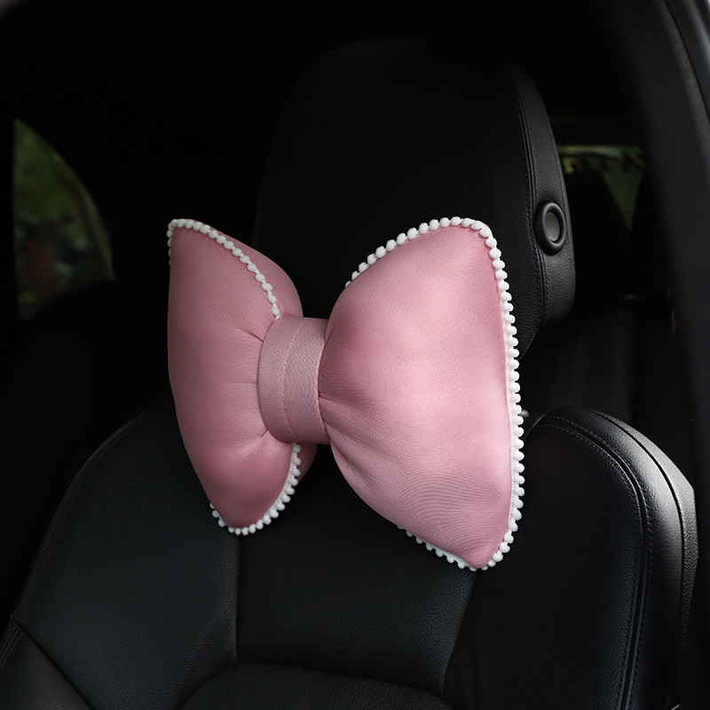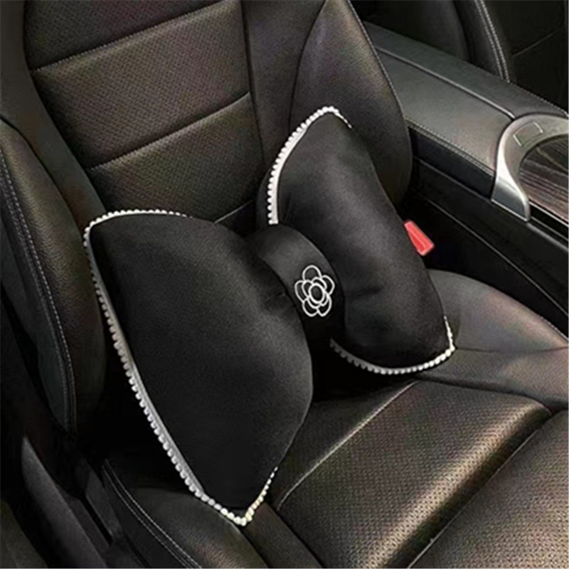 四季通用山茶花蝴蝶结汽车头枕腰靠 车载毛绒靠枕护颈枕汽车用品