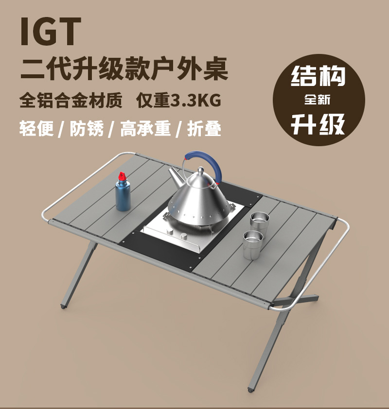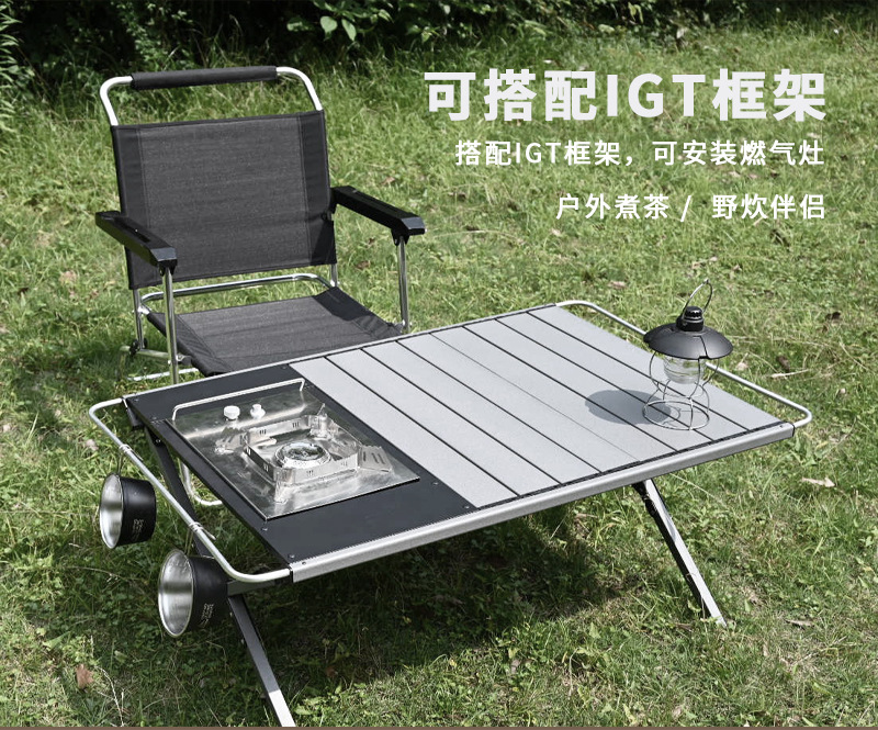 户外露营铝合金蛋卷桌 IGT战术烧烤多功能可拼接便携折叠式蛋卷桌