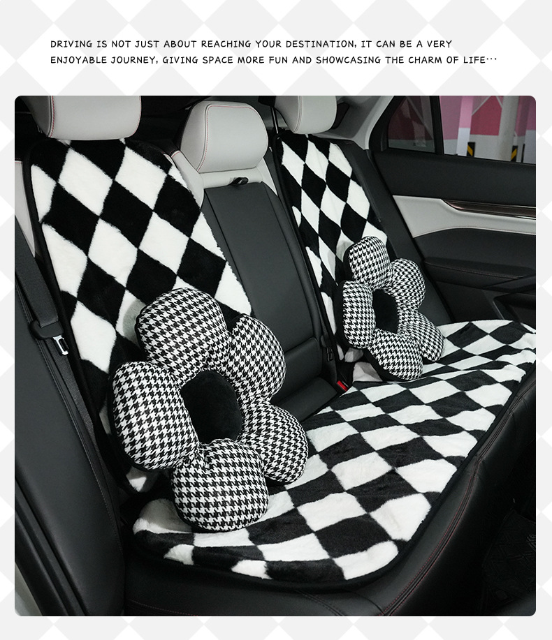 houndstooth flower headrest black(千鸟格花朵头枕黑色) USD $2.33 9956 piece available