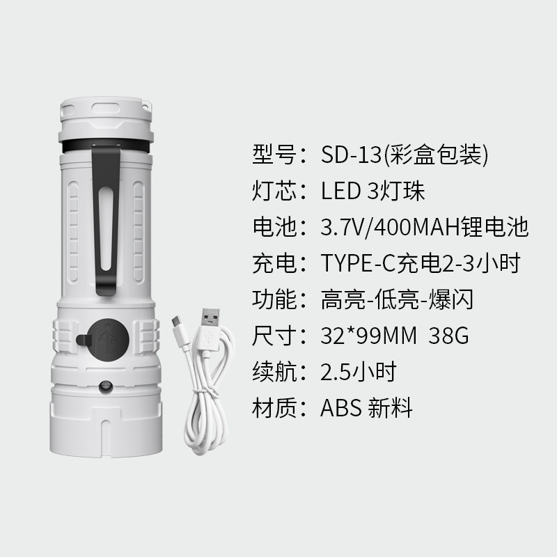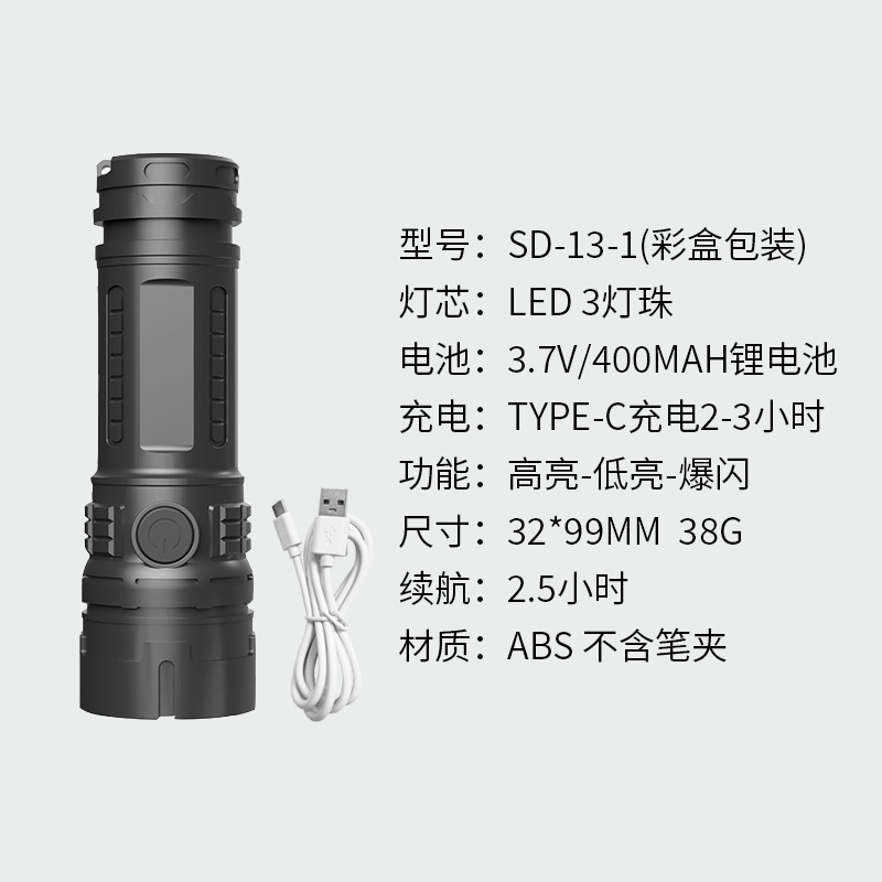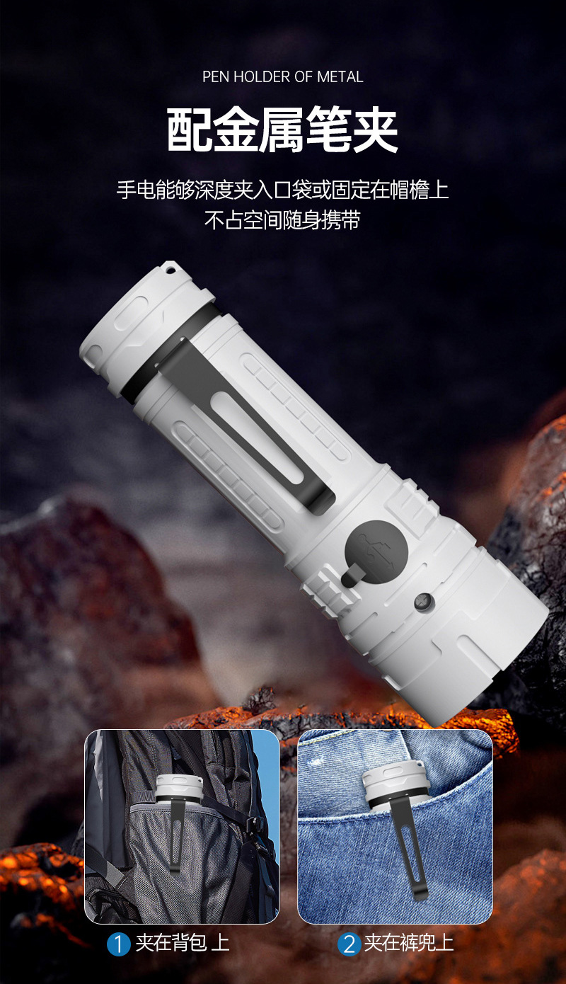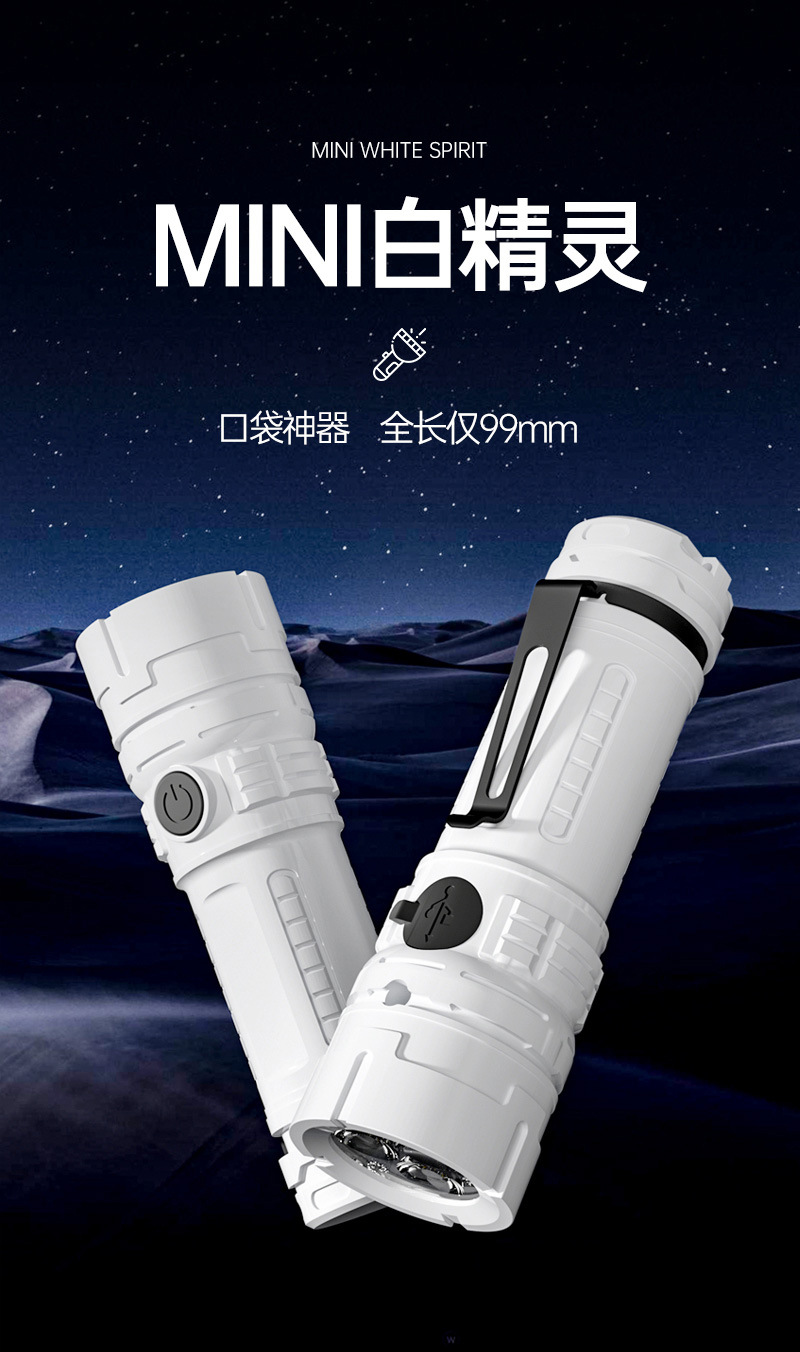 户外便携手电筒 轻巧迷你含金属笔夹 LED照明手电充电应急手电筒