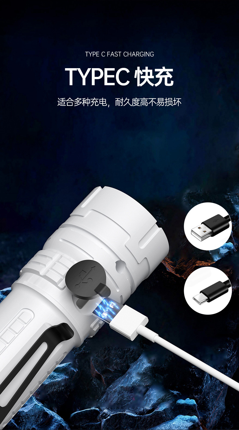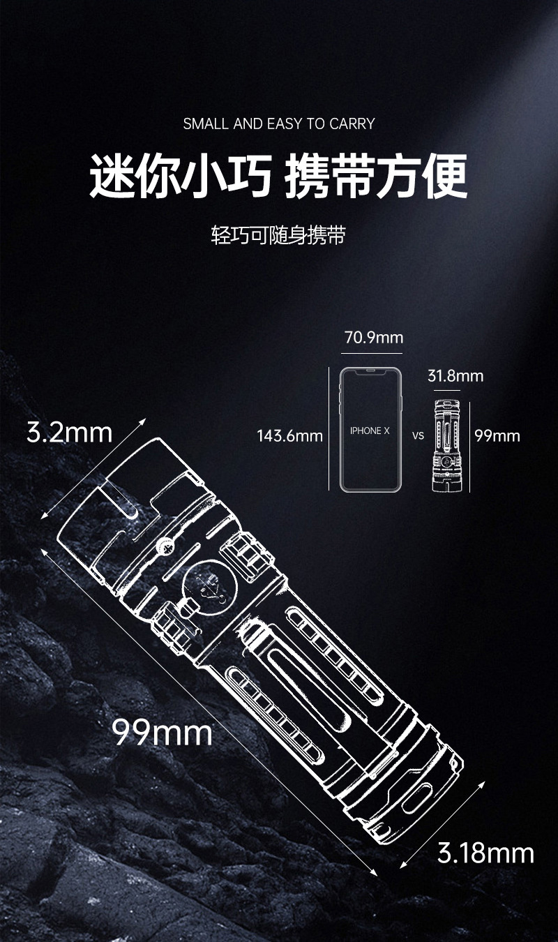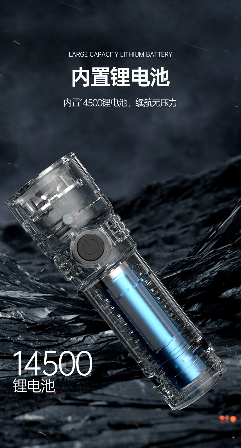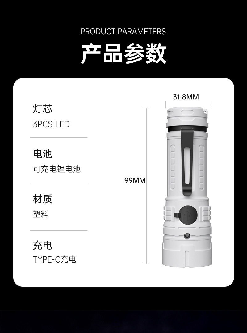 户外便携手电筒 轻巧迷你含金属笔夹 LED照明手电充电应急手电筒