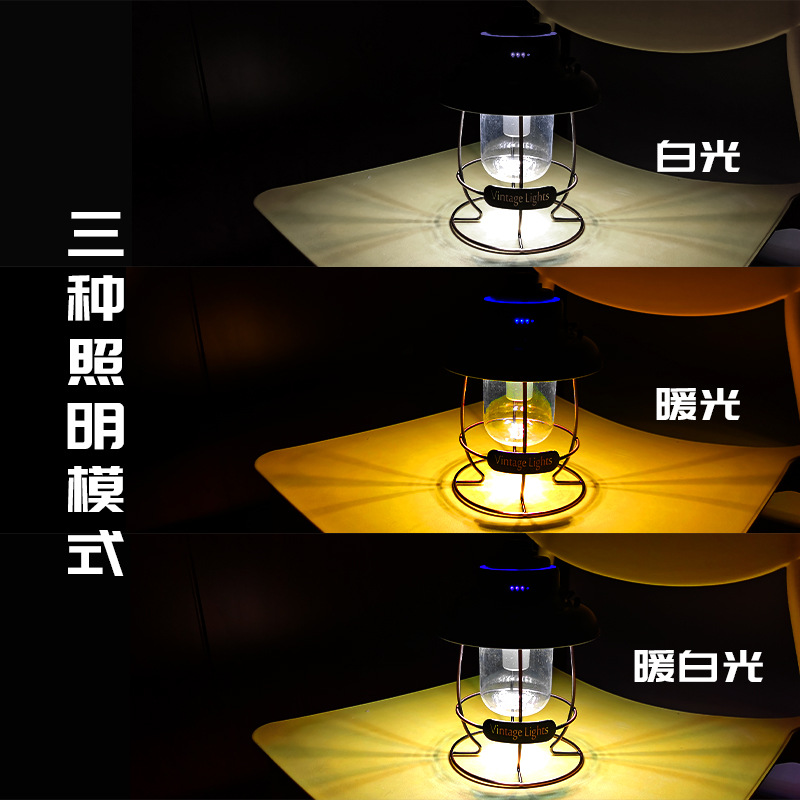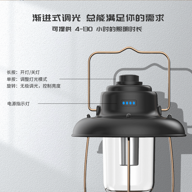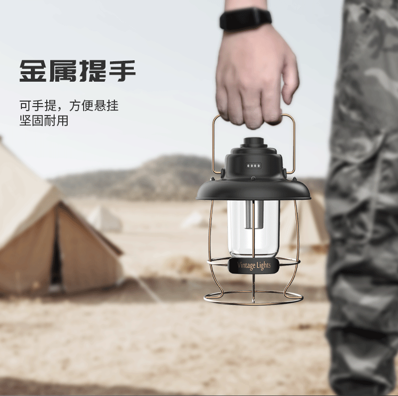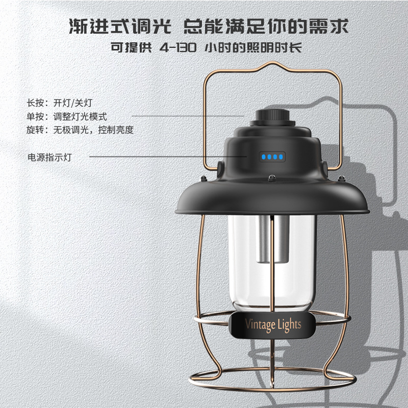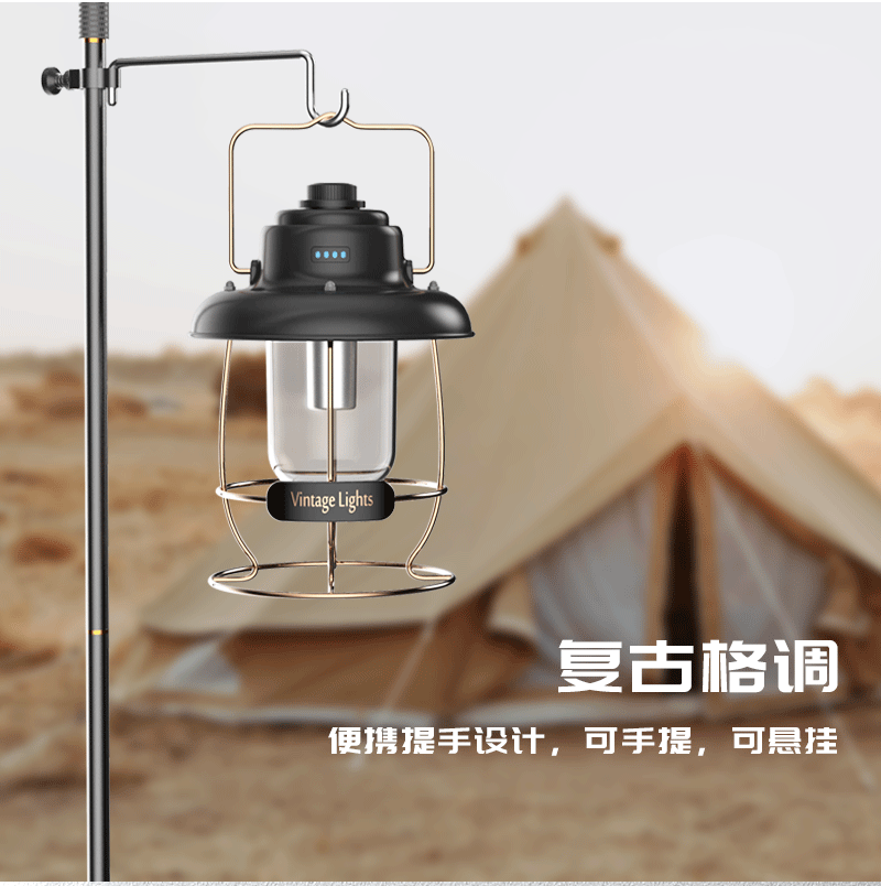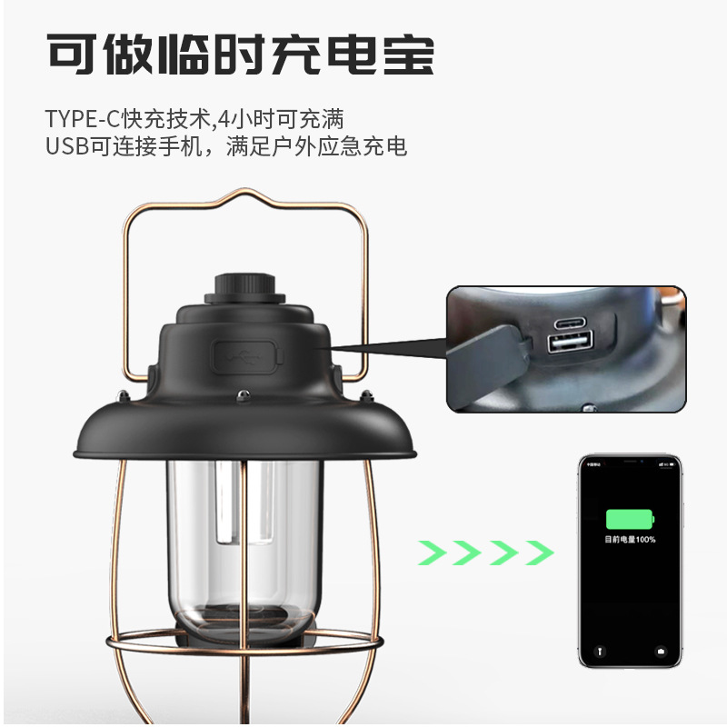 多功能复古铁艺野营灯 充电18650无极调光LED露营悬挂野营灯