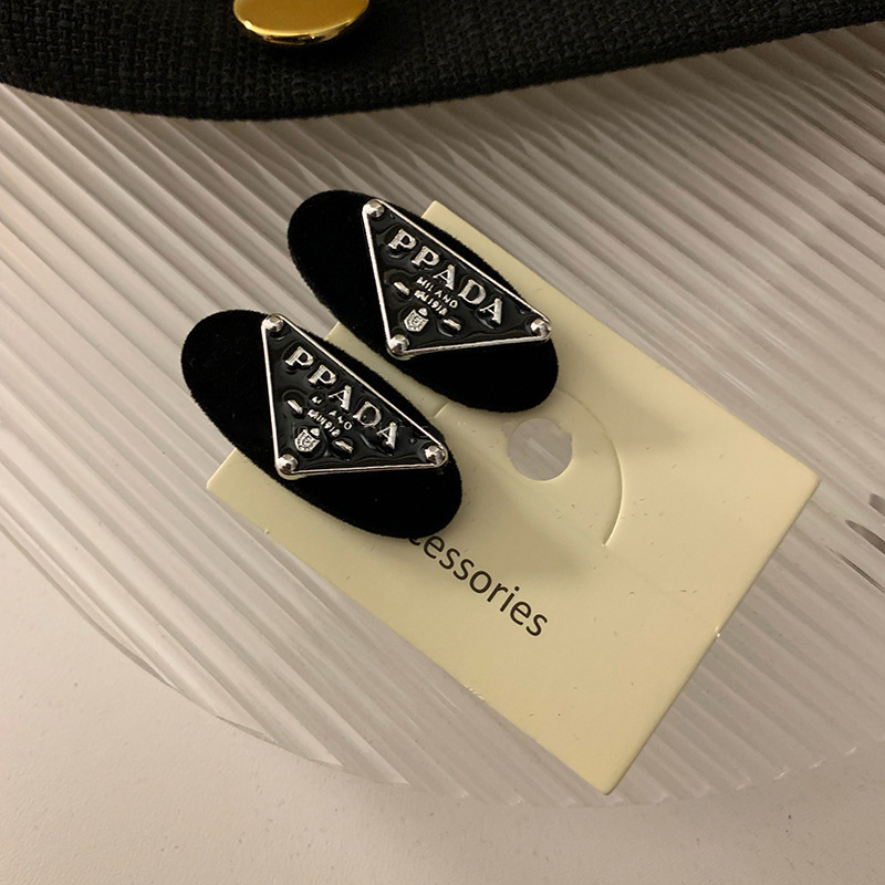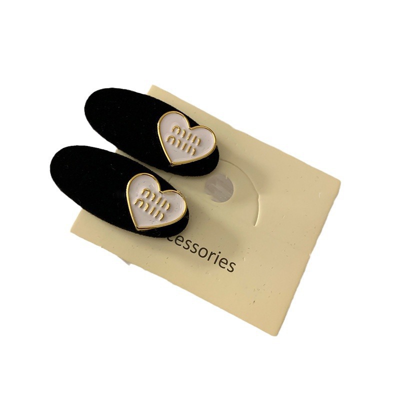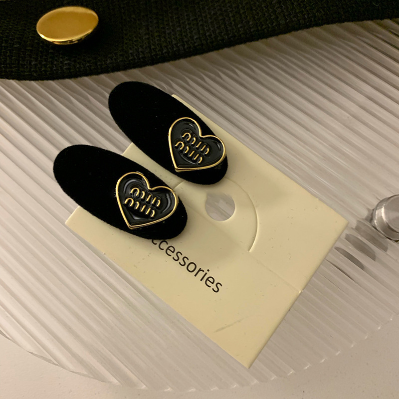 黑色新款丝绒发夹字母小香风复古法式侧刘海夹边夹2024年流行发饰
