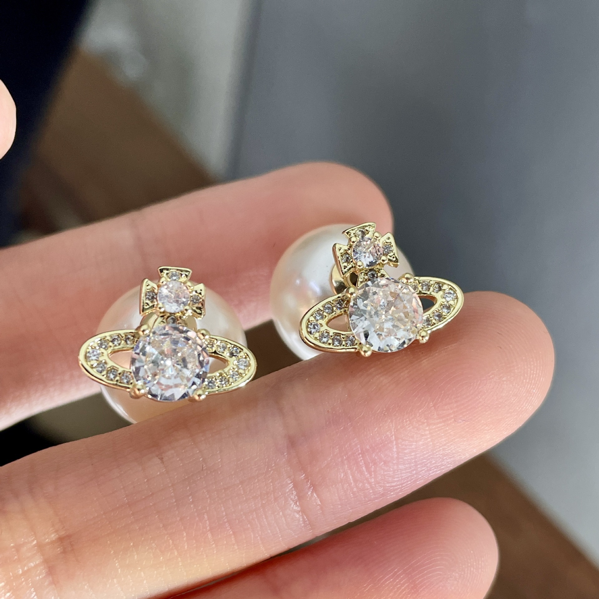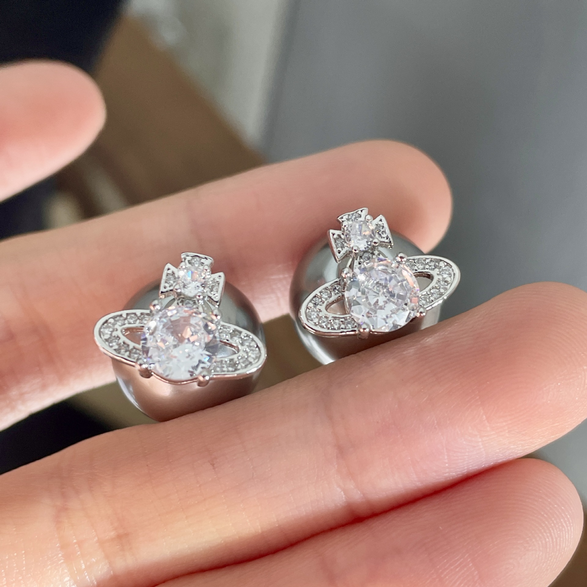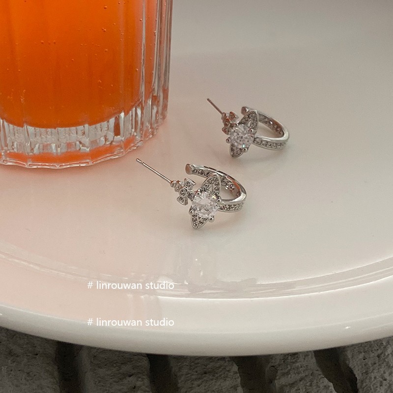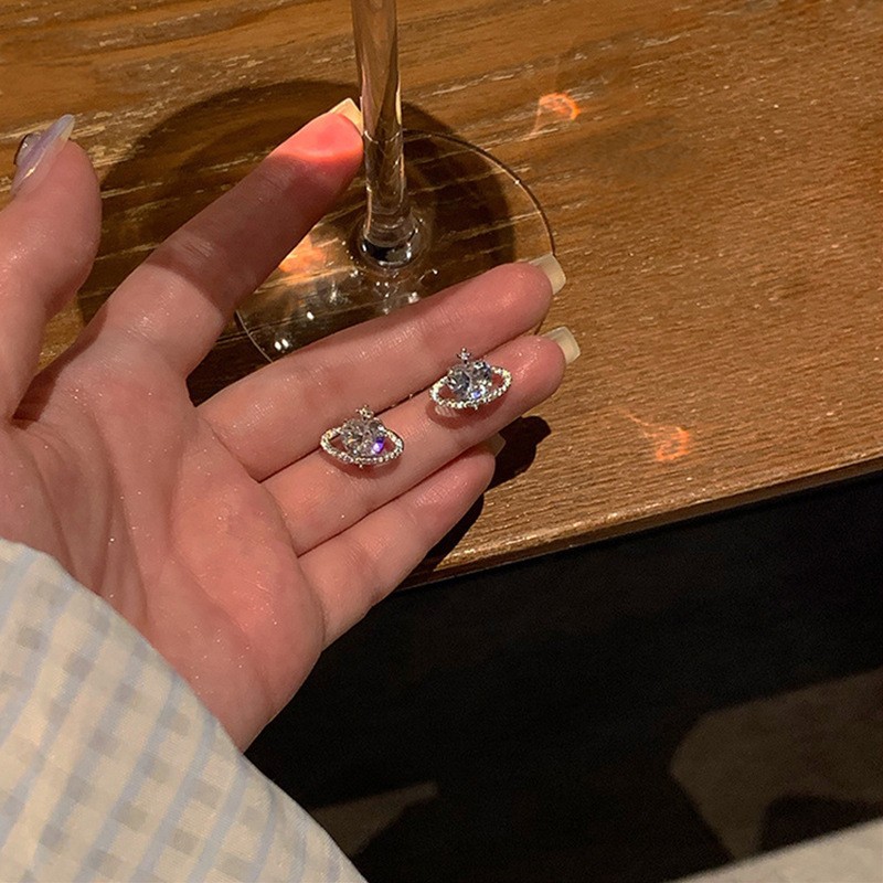西太后同款土星满钻镶钻小众ins风耳钉耳环网红简约设计款耳饰女