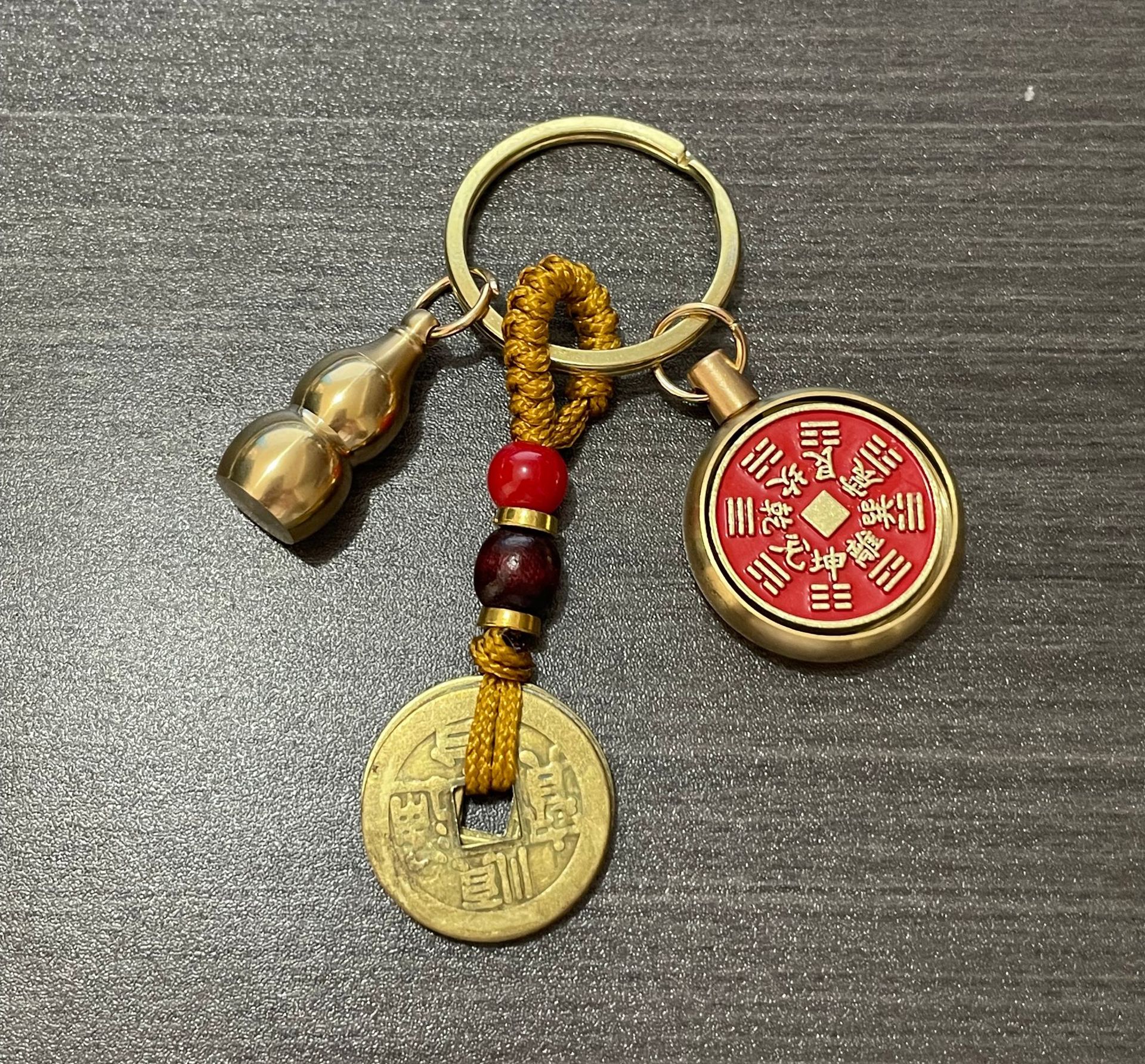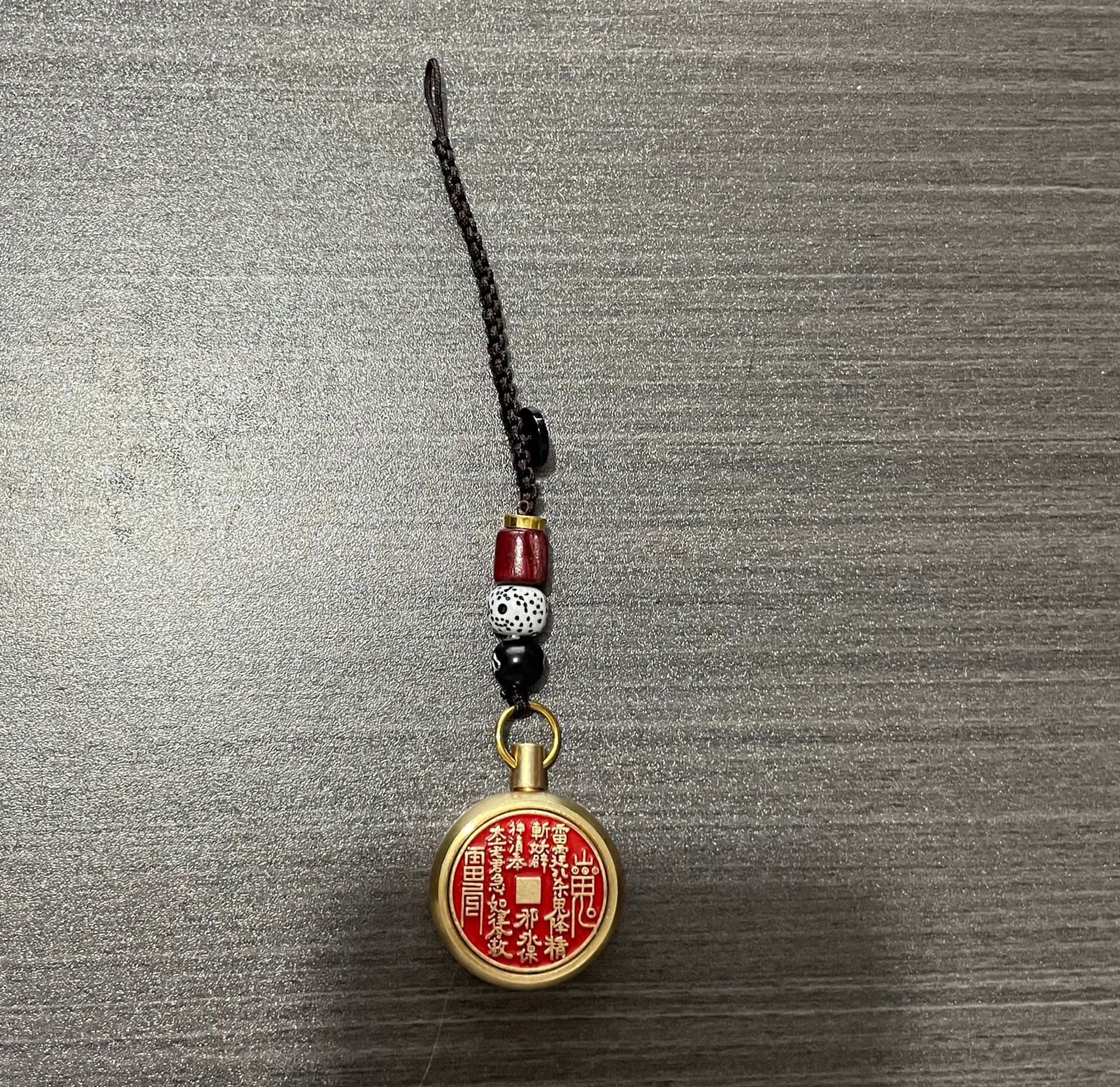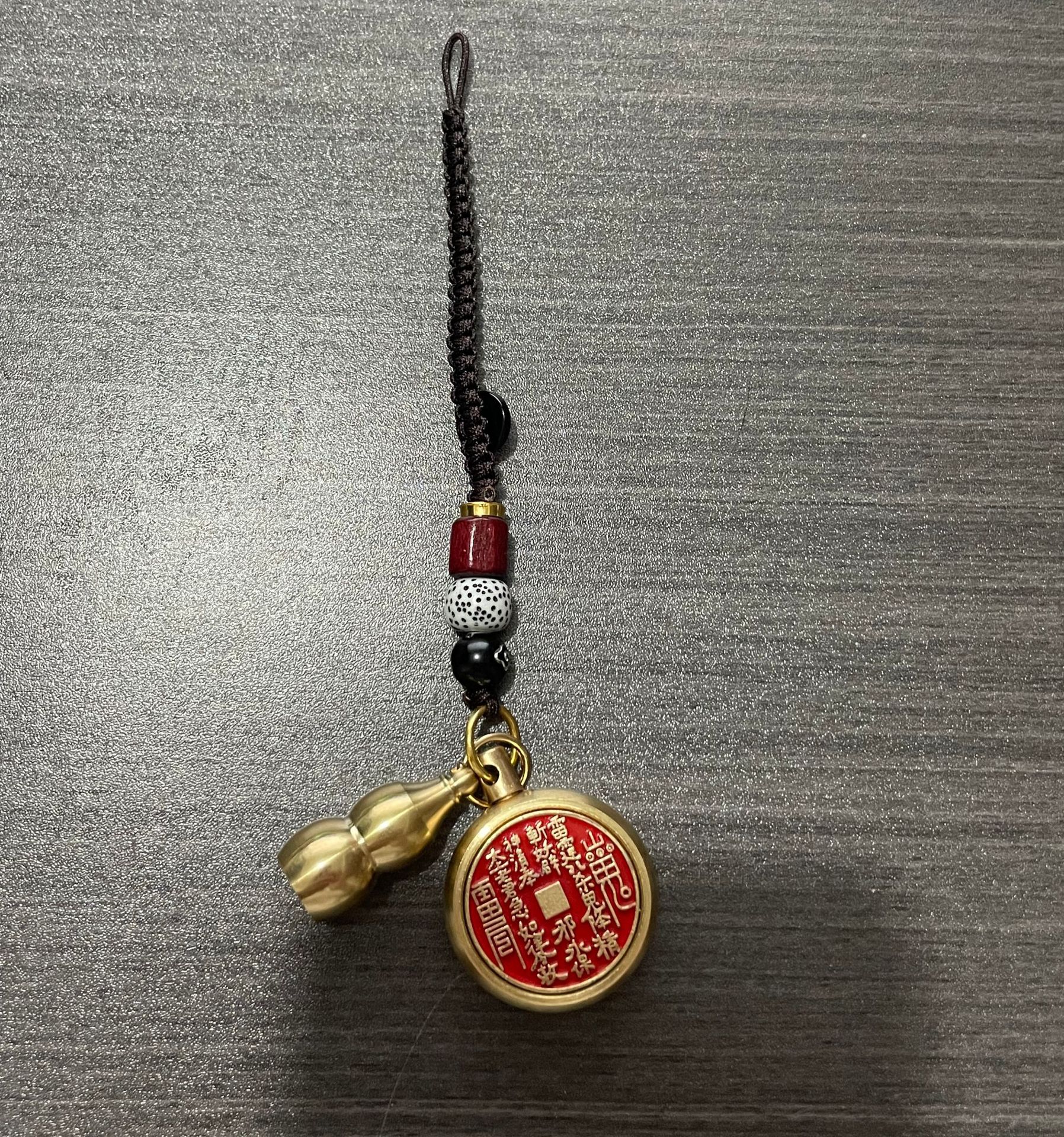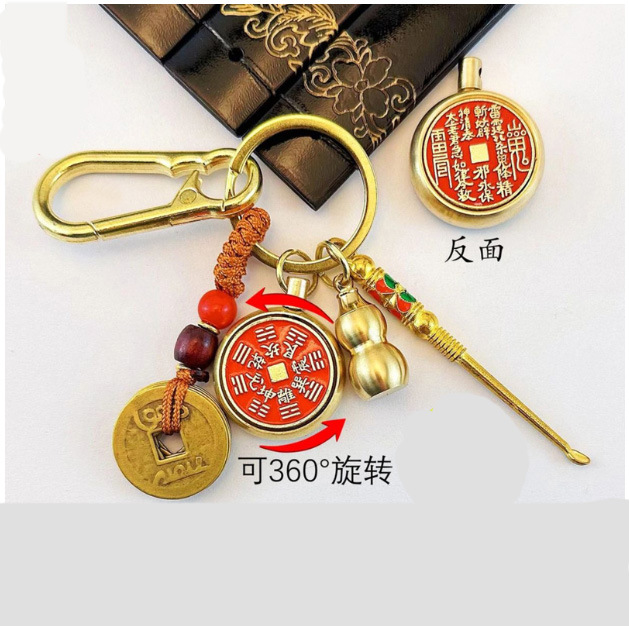 纯黄铜十二生肖山鬼花钱转转钥匙扣朱砂空心葫芦汽车挂件厂家批发