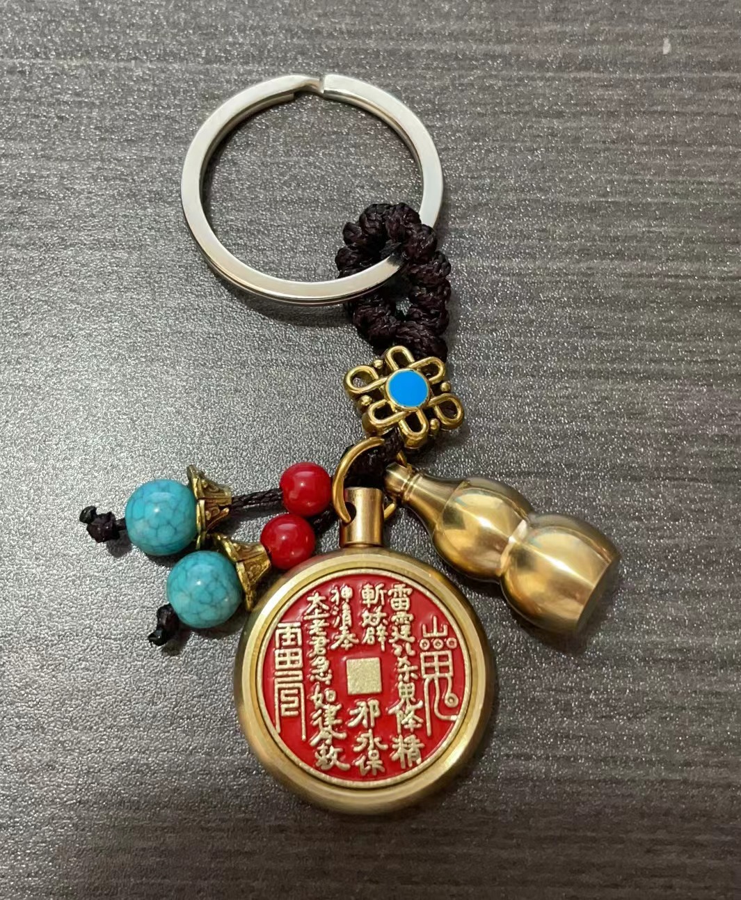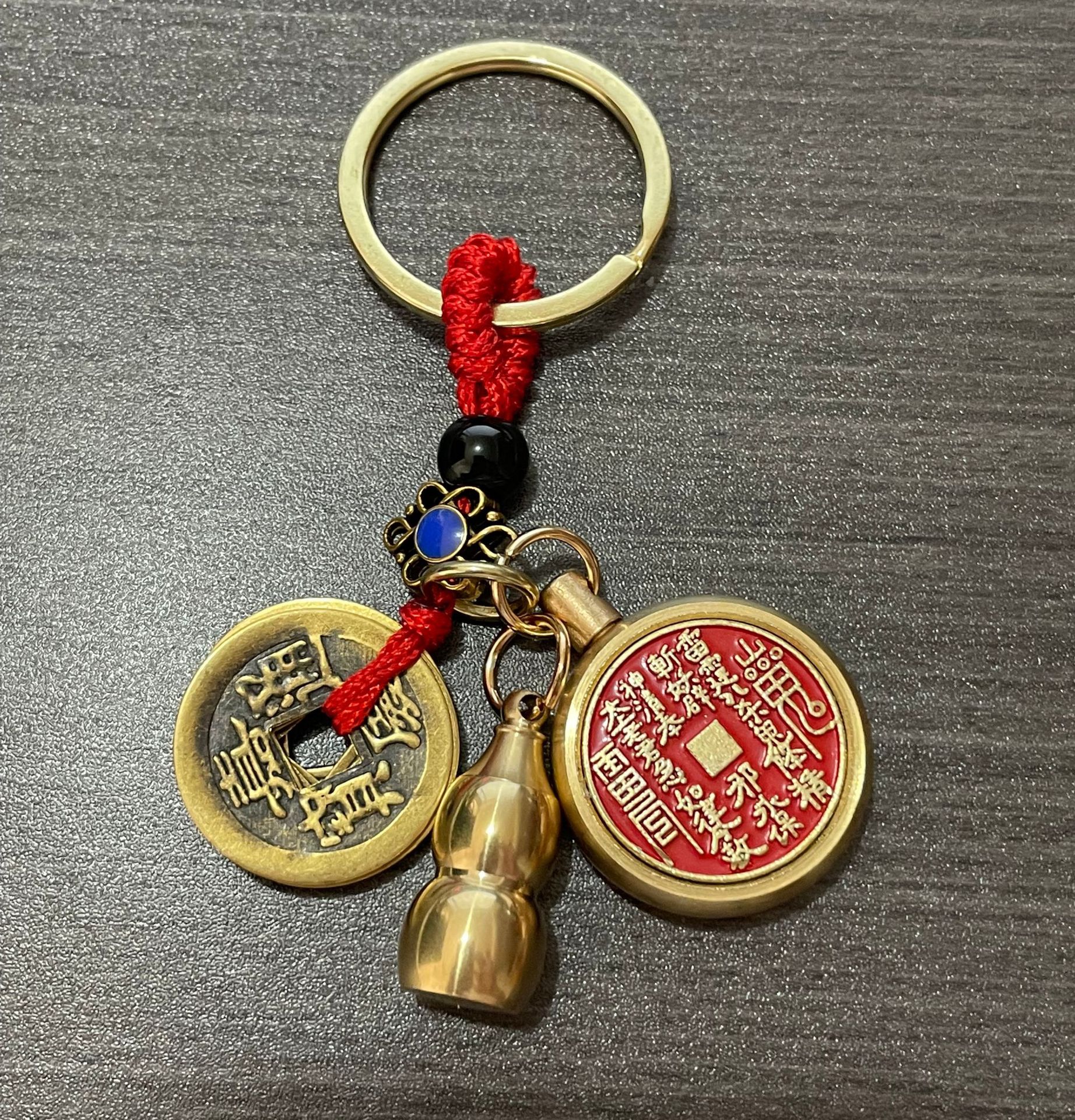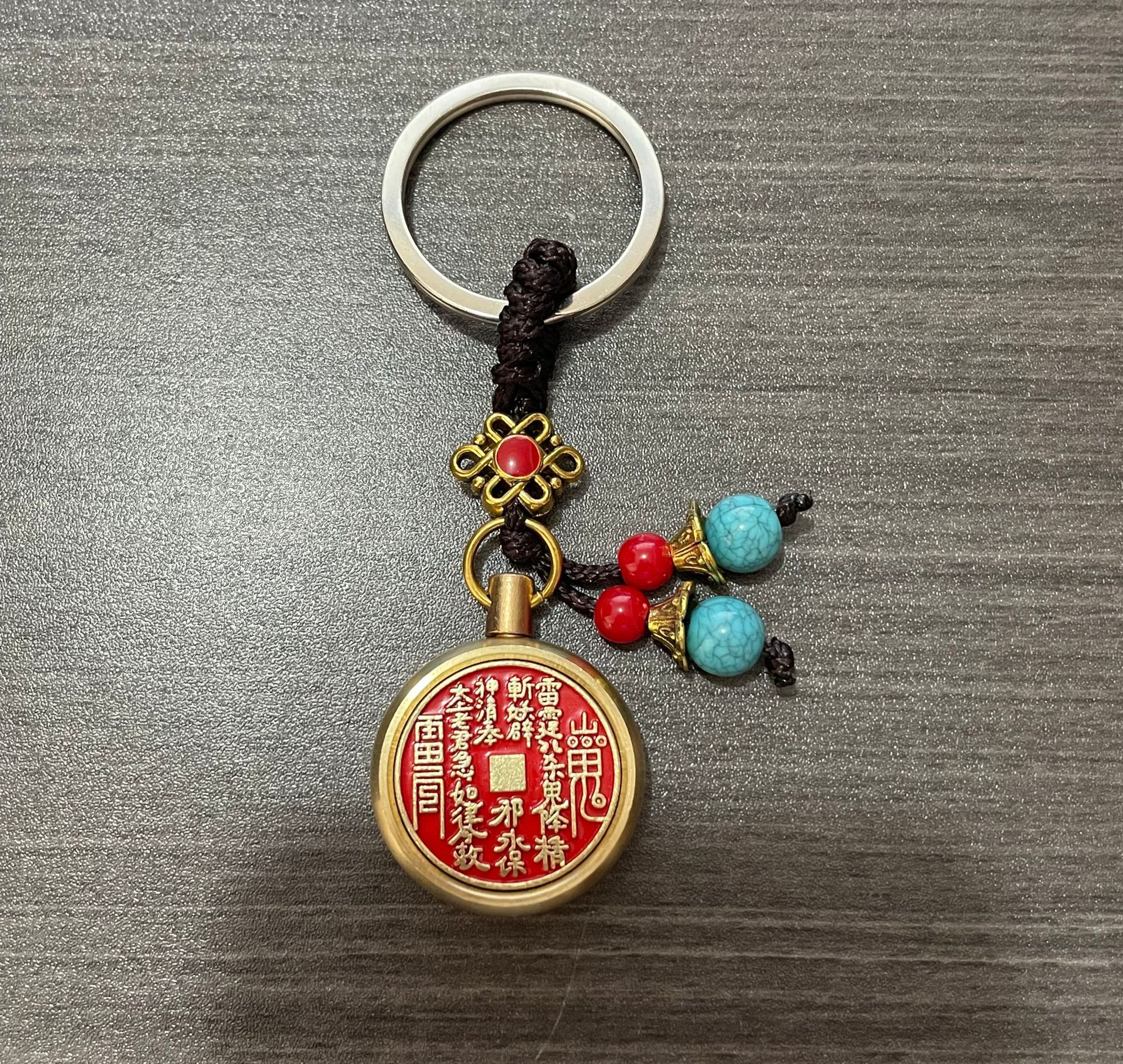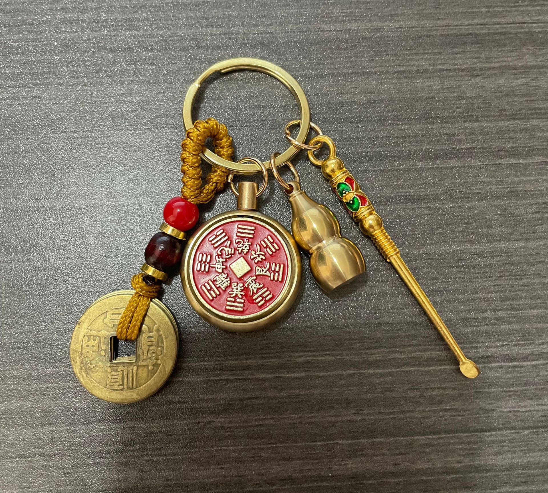 纯黄铜十二生肖山鬼花钱转转钥匙扣朱砂空心葫芦汽车挂件厂家批发
