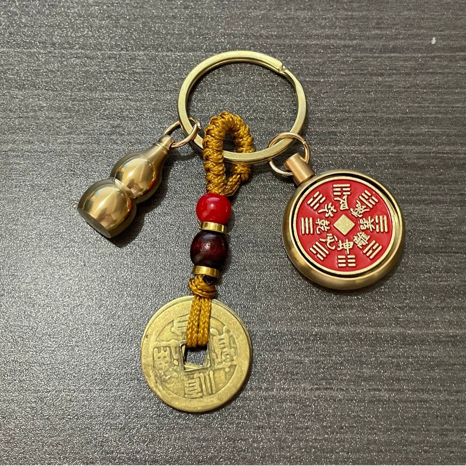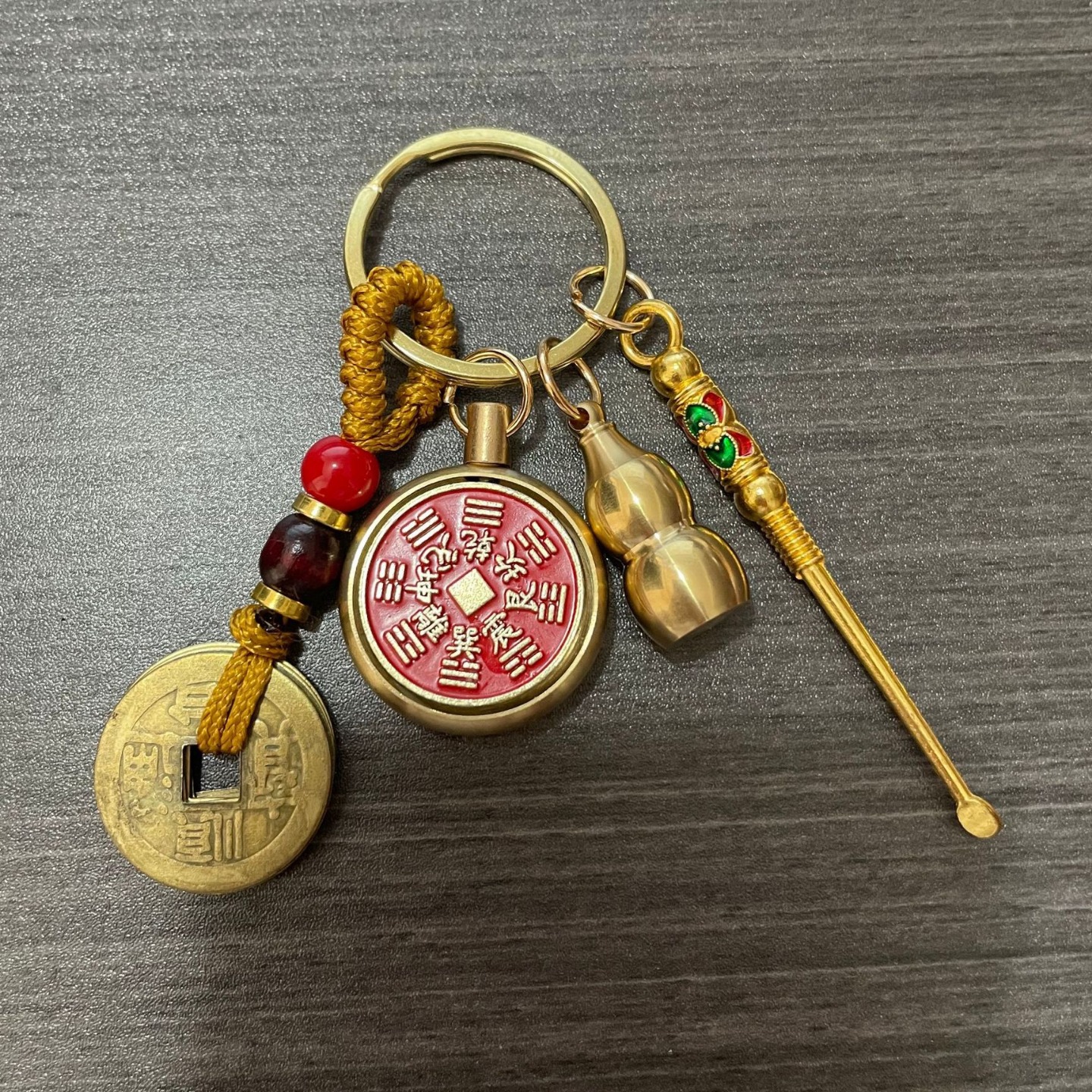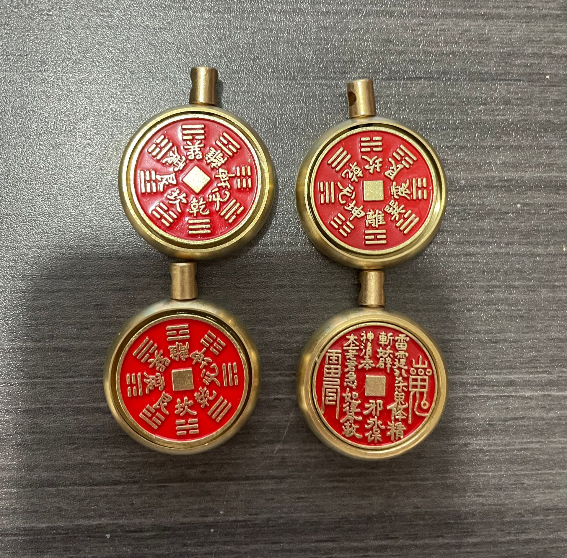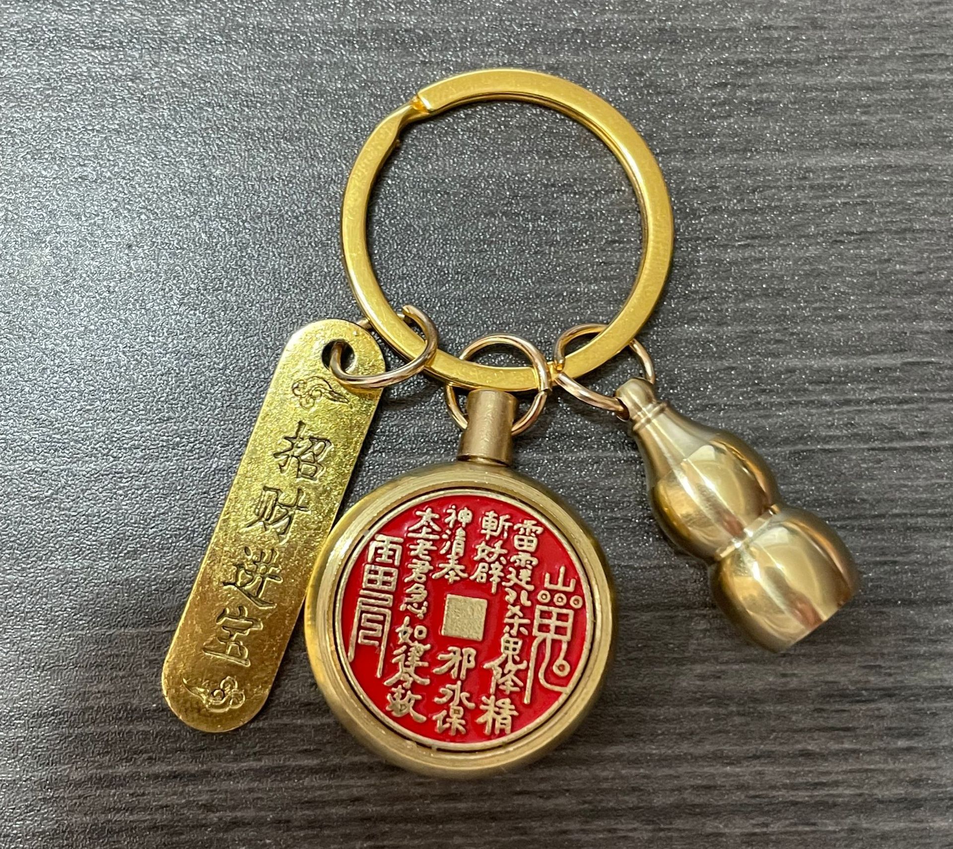 纯黄铜十二生肖山鬼花钱转转钥匙扣朱砂空心葫芦汽车挂件厂家批发
