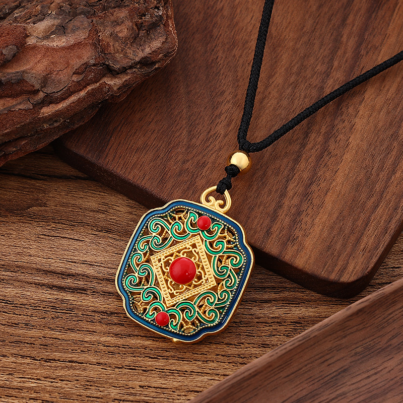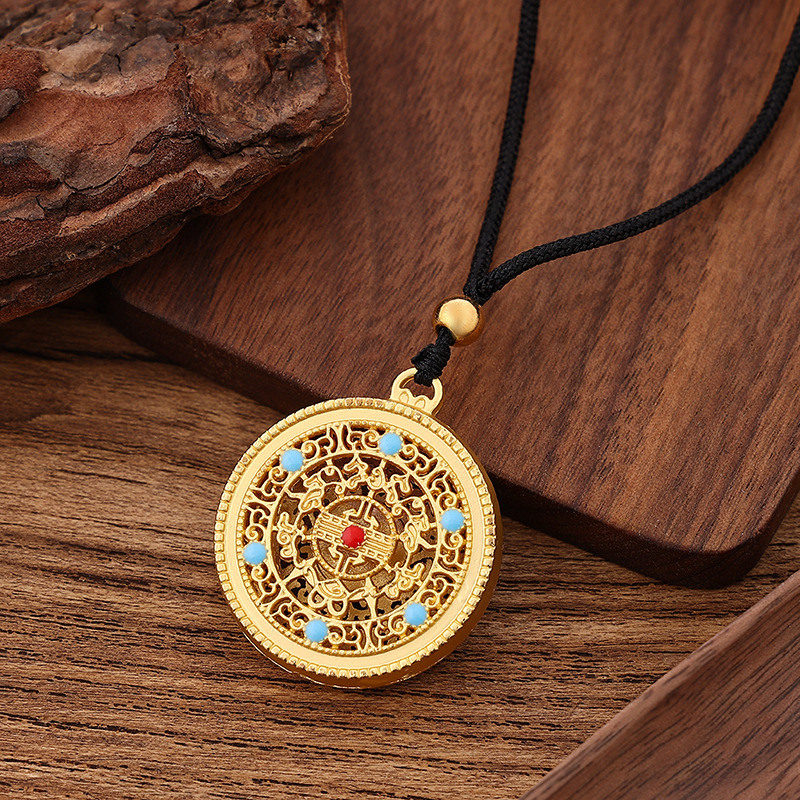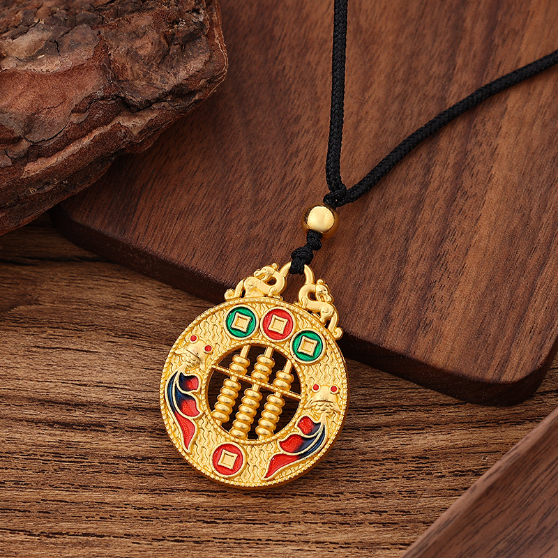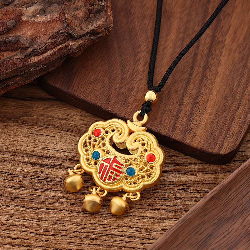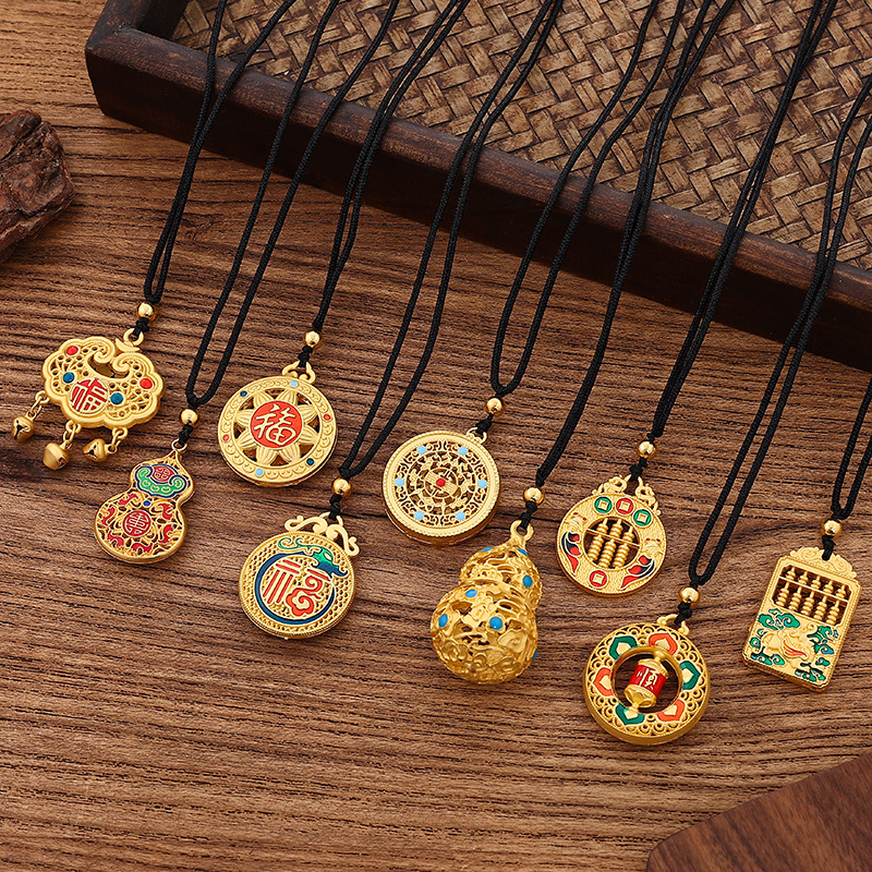 新品保色沙金吊坠项链五福圆满民族风多款现货黑绳颈链成品批发