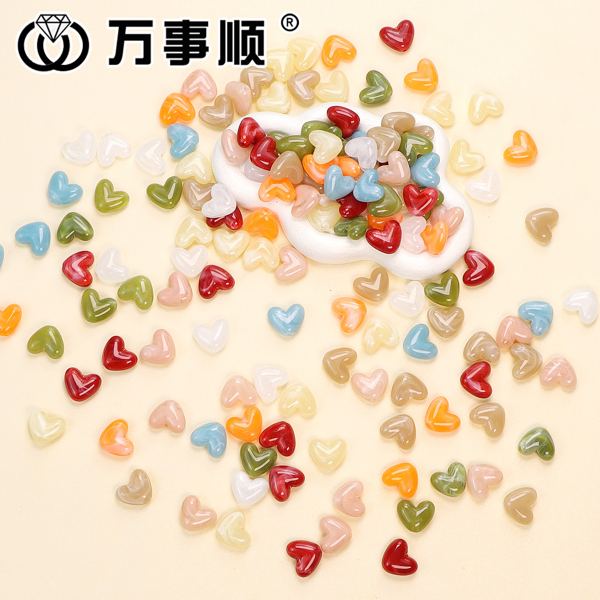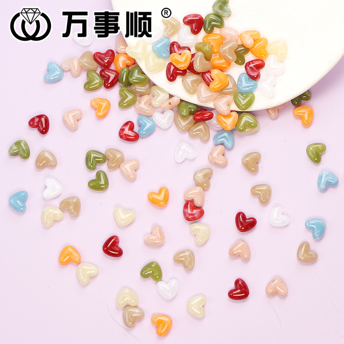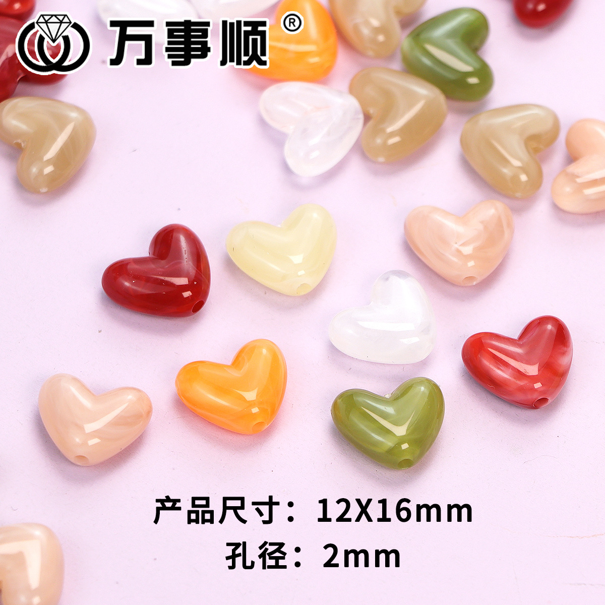 12mm亚克力复古晕染小爱心串珠散珠diy耳饰发夹手链饰品配件批发