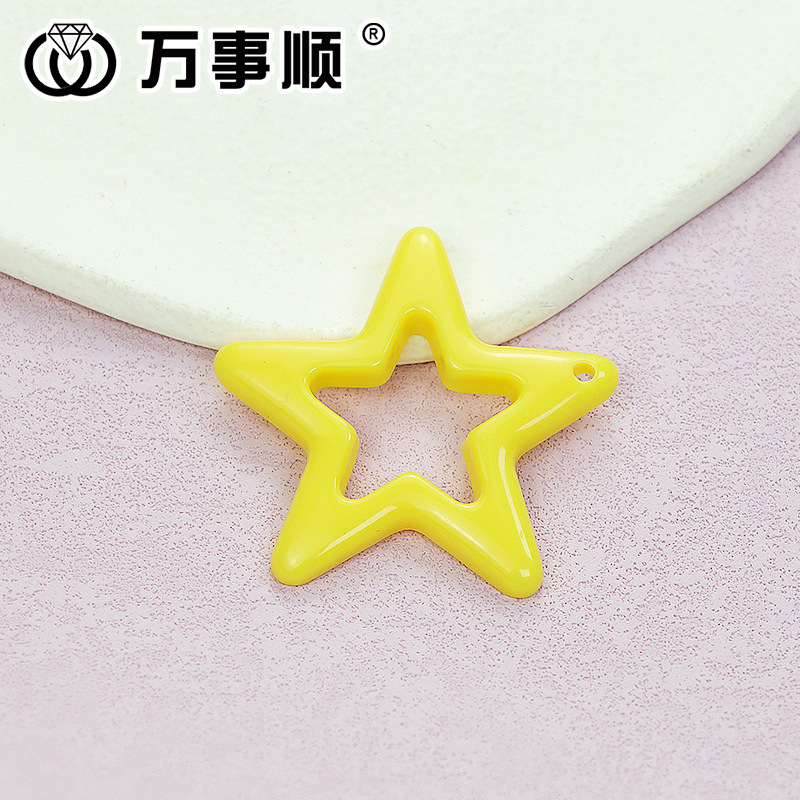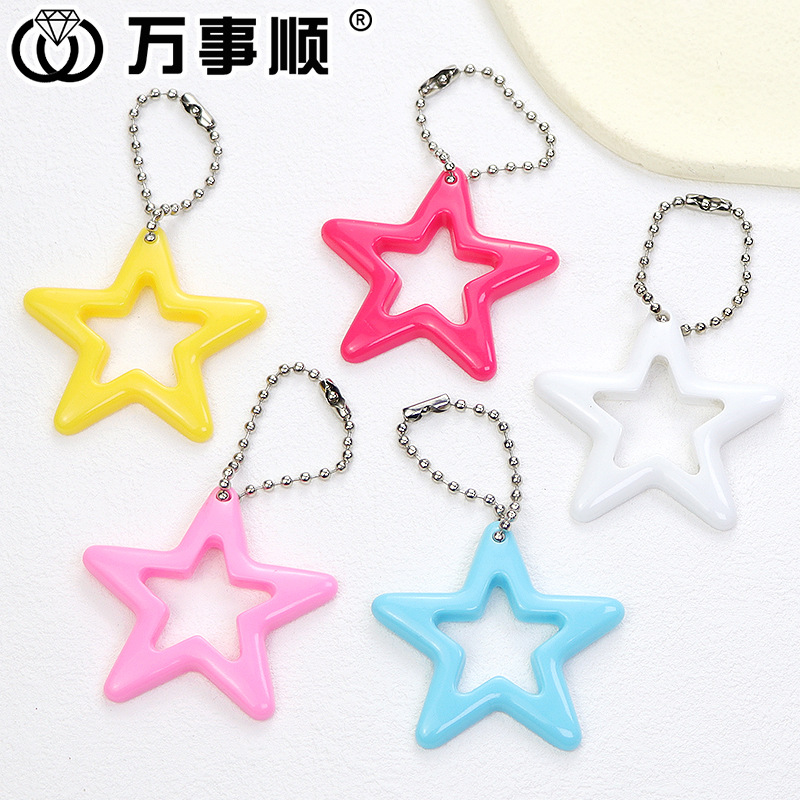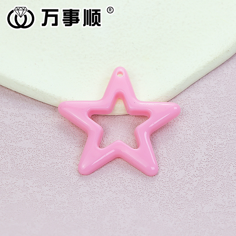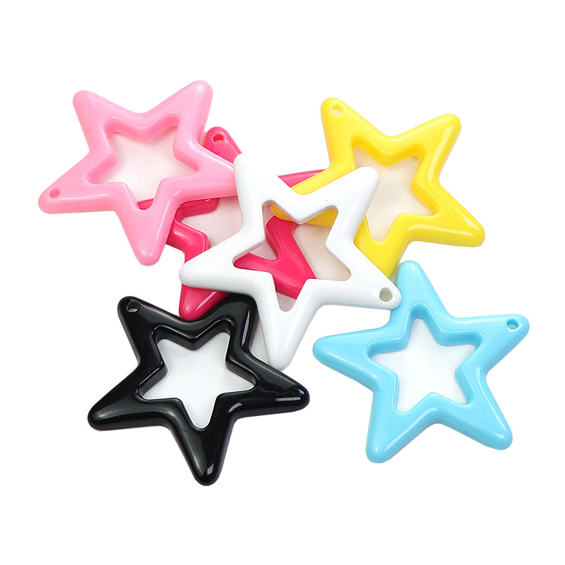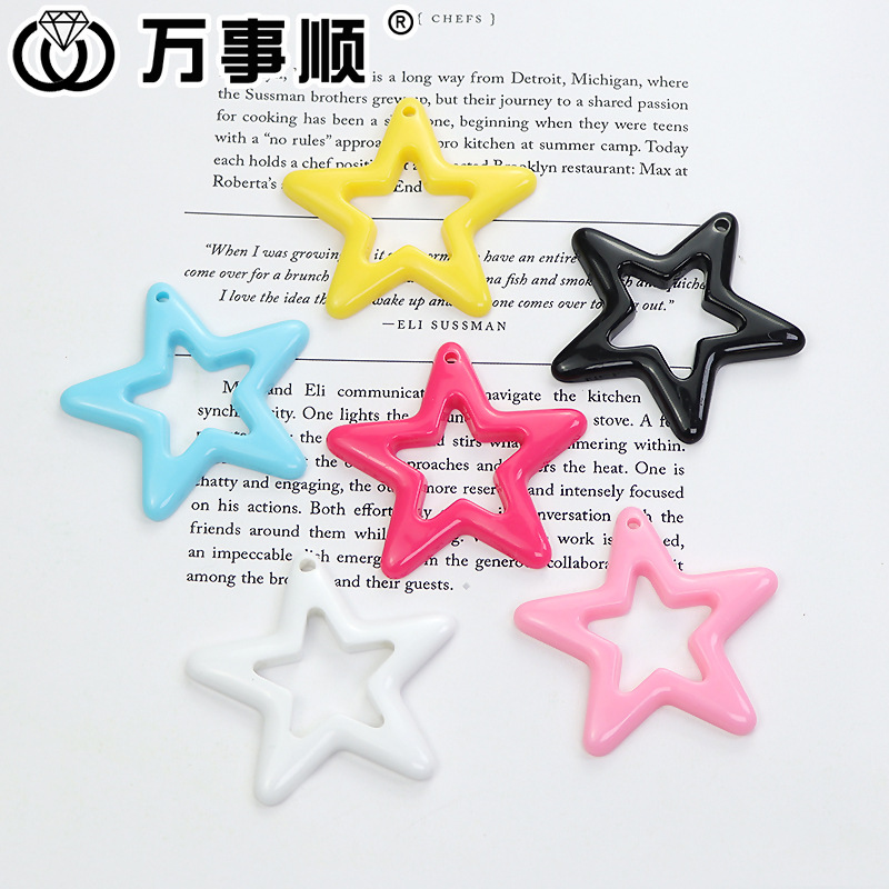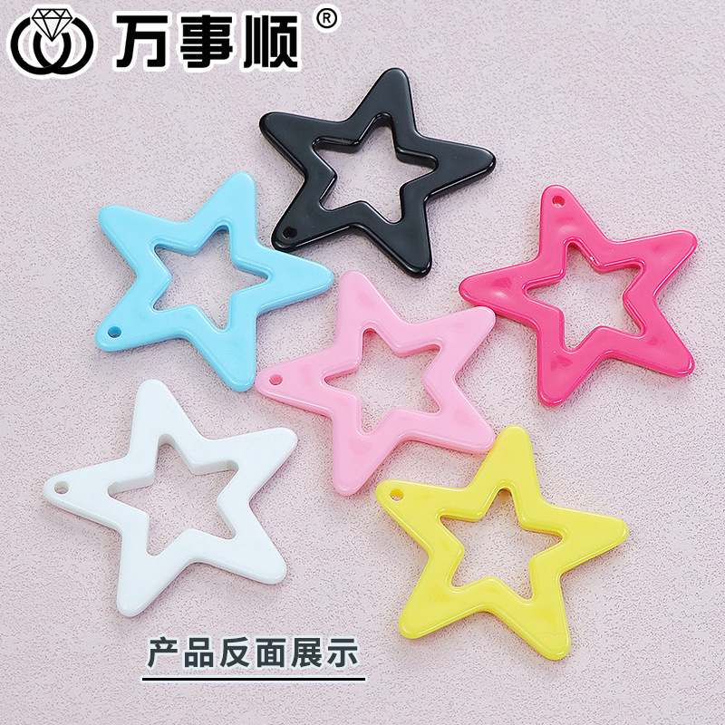 46x43亚克力亮光镂空五角星手机钥匙扣DIY发饰抓夹饰品配件包批发