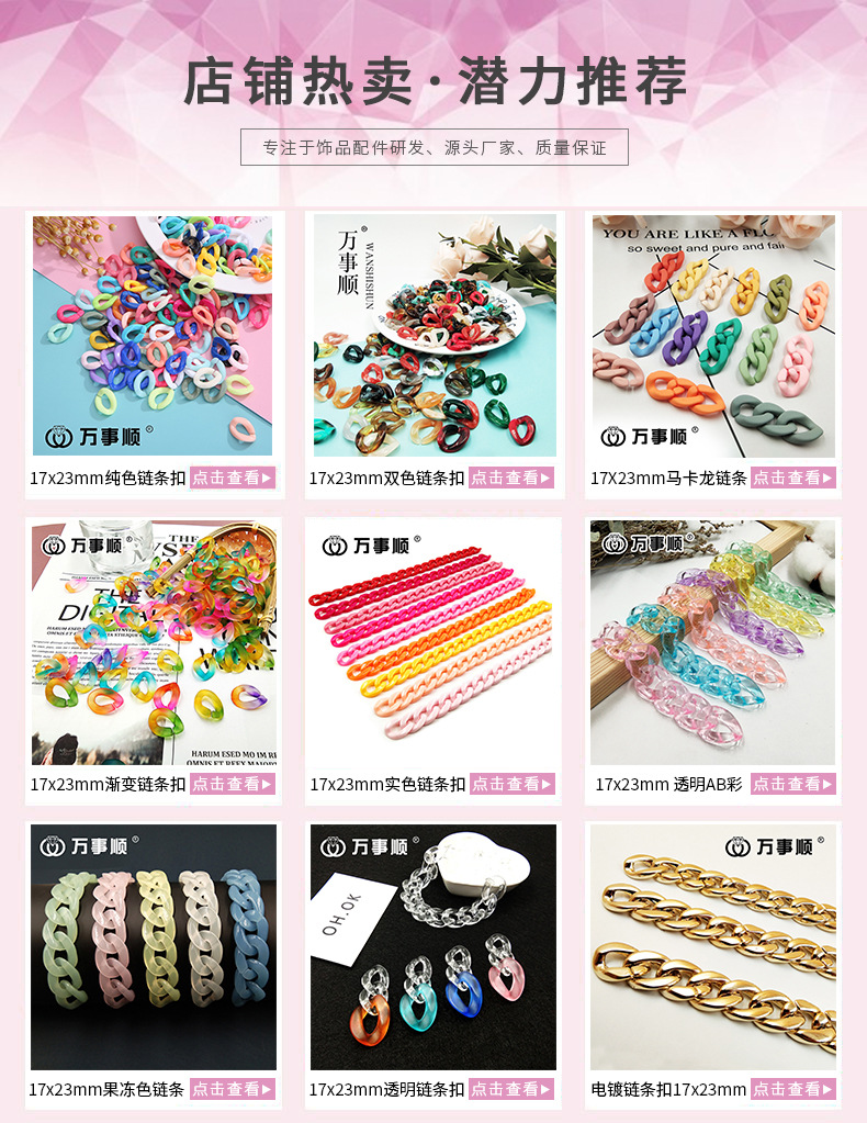 厂家批发 塑料亚克力 链条扣彩色透明开口圈17x23mm diy饰品配件