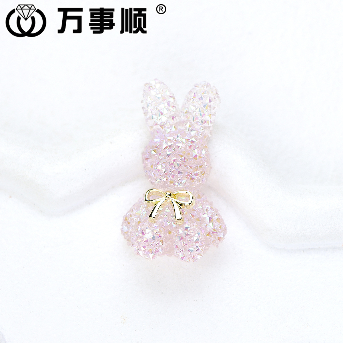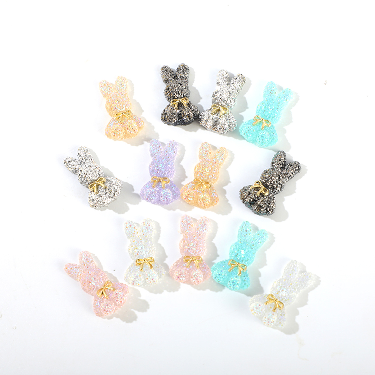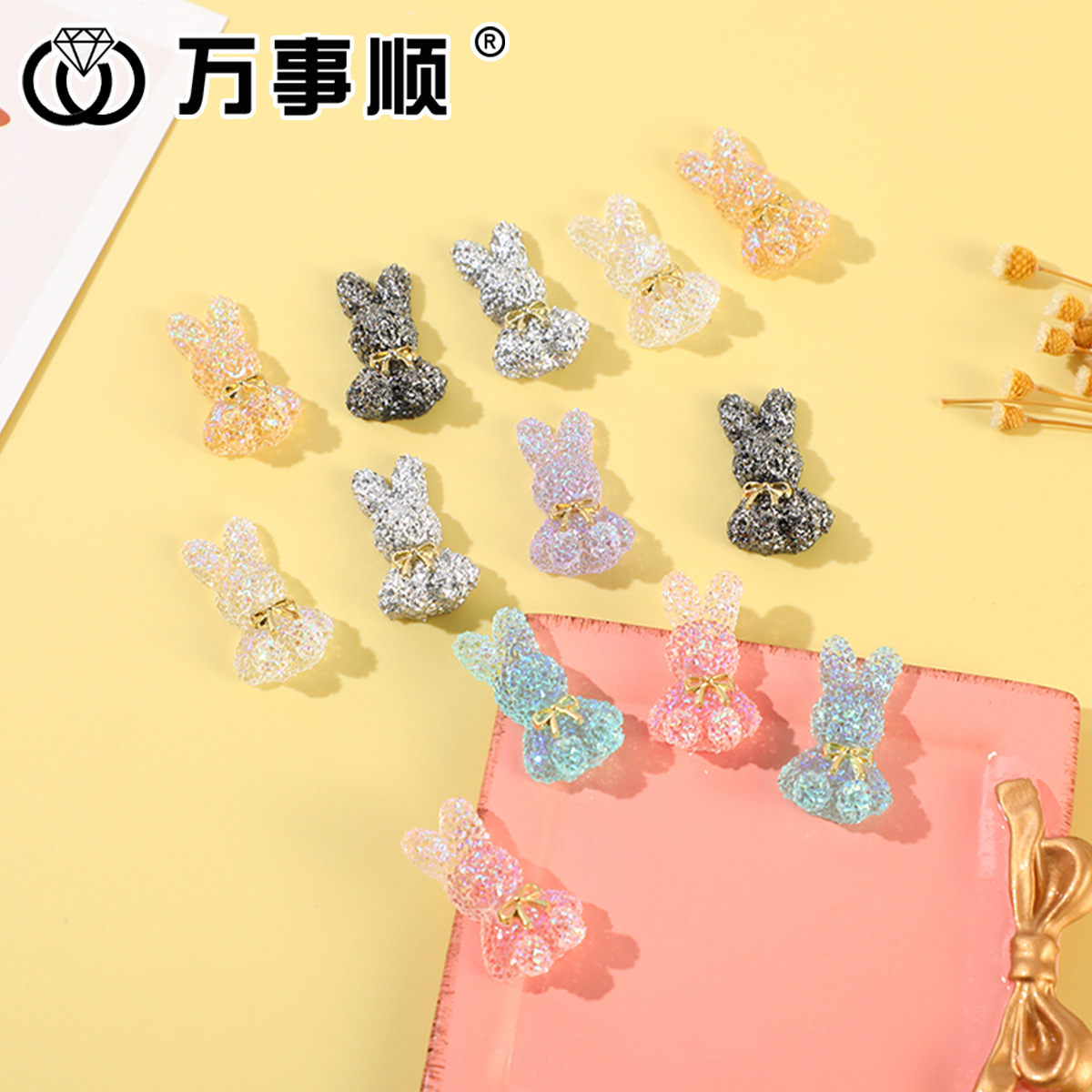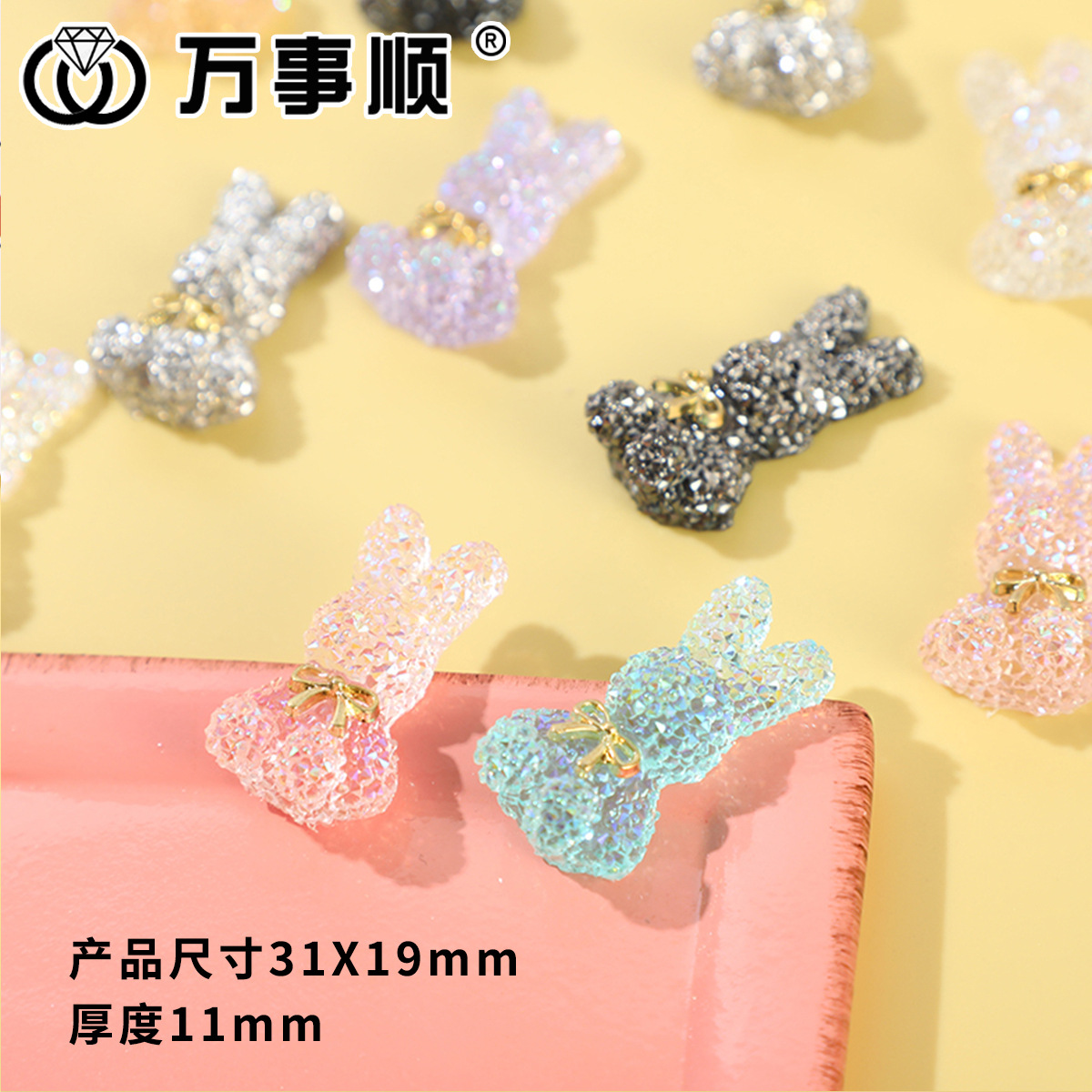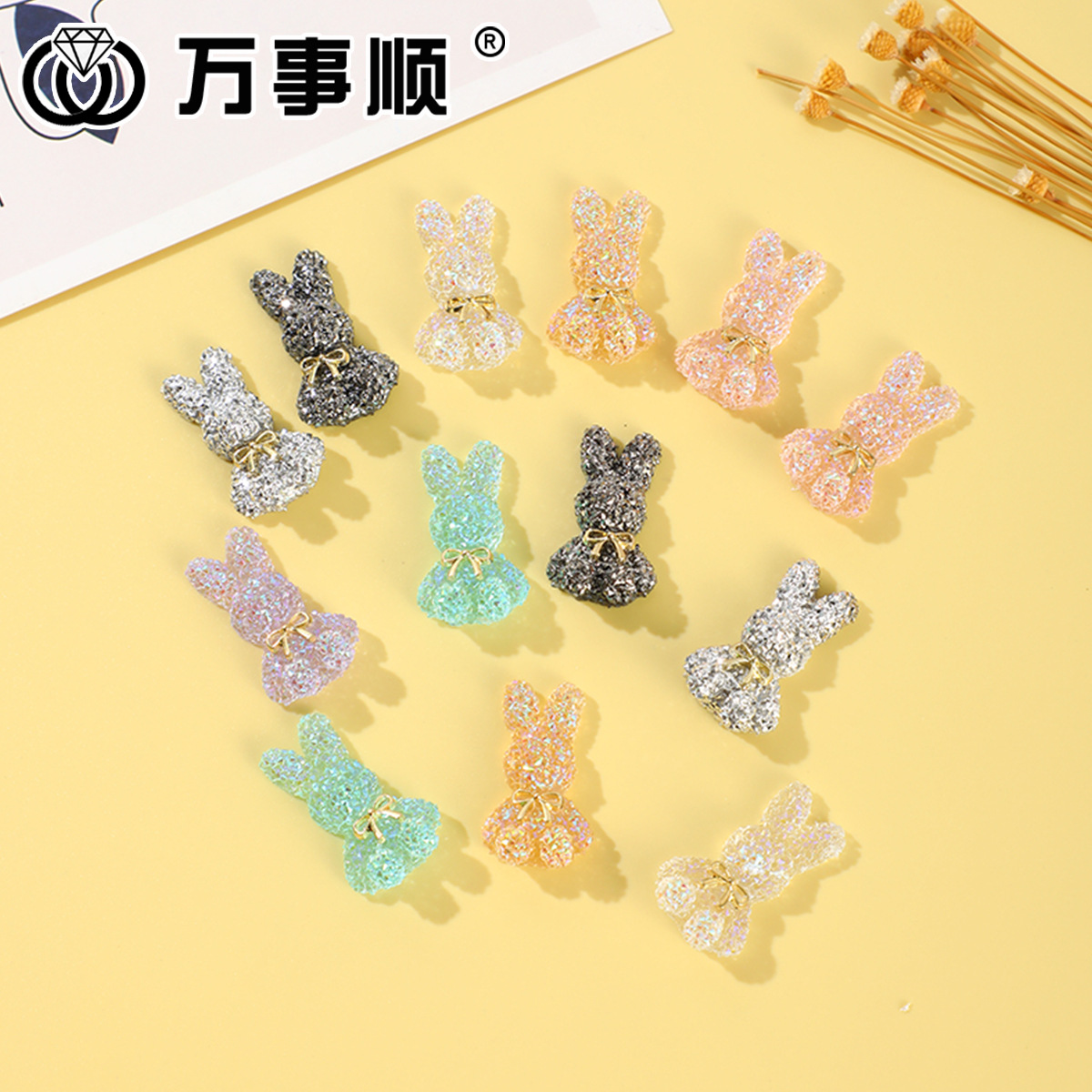 网红可爱卡通领结兔子砂糖树脂饰品配件 diy鞋花耳钉头饰发饰配件