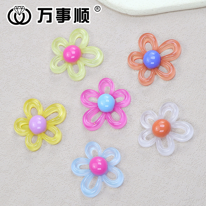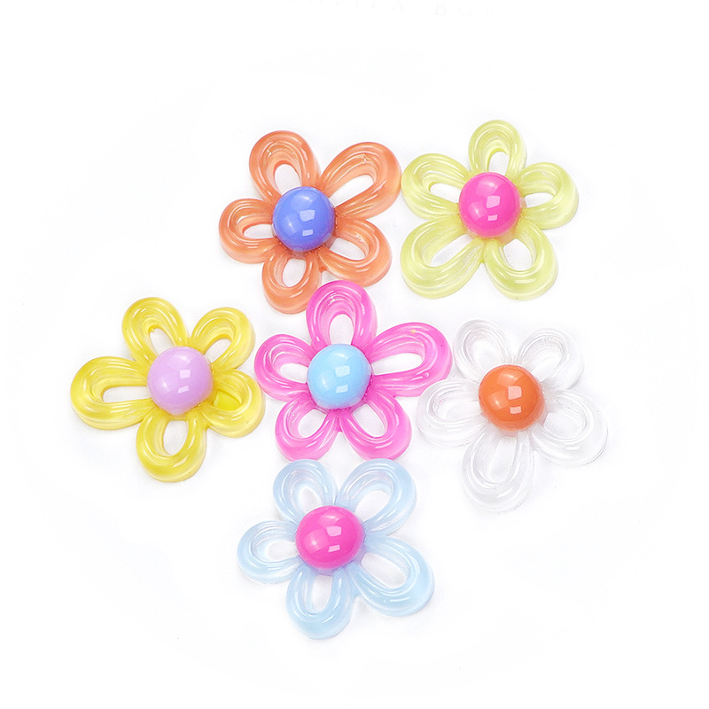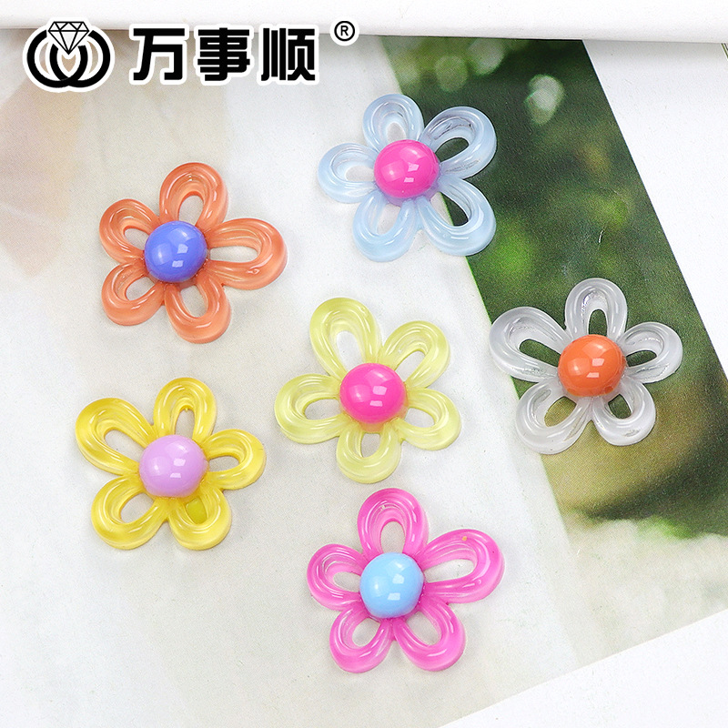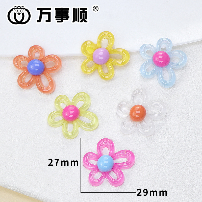 透明彩色镂空树脂五瓣花 diy发夹头饰贴片手机壳耳环项链配件批发