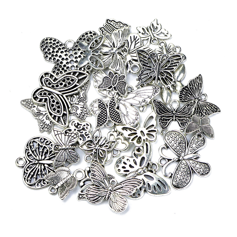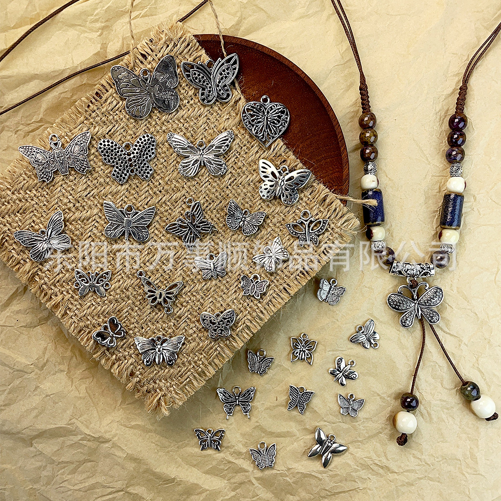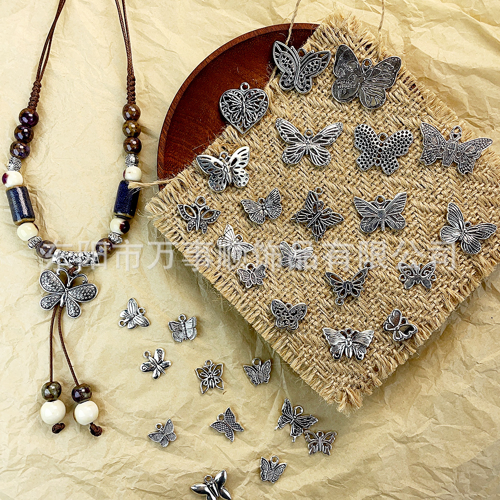 跨境专供复古藏银锌合金配饰新中式蝴蝶项链手链吊坠饰品配件批发